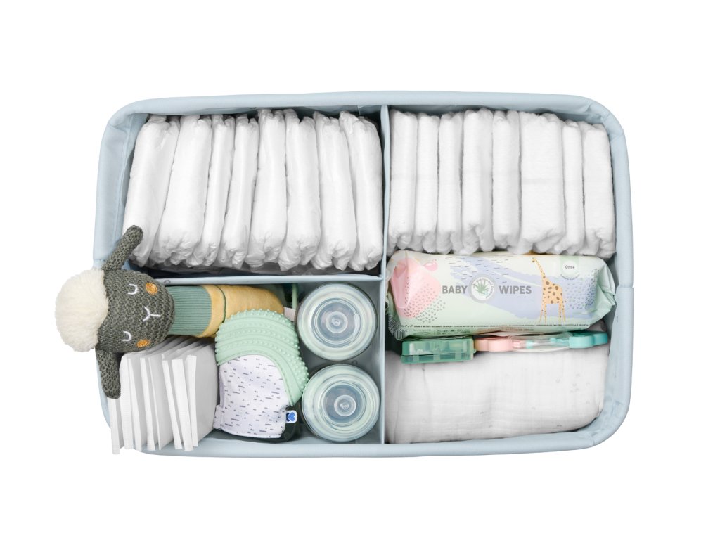 Praktický přenosný organizér v krásném textilním provedení s vnitřními přehrádkami vám pomůže přehledně uložit toaletní a přebalovací potřeby pro vaše miminko. Díky držadlům se snadno přenáší a můžete jej tak mít vždy po ruce kdekoli potřebujete. Odnímatelná přepážka umožnuje volbu členění vnitřního prostoru. Když organizér nepoužíváte, snadno jej složíte do plochého tvaru pro uložení. Složení: 100% polyester Rozměry: 42 x 27 x 17 cmDoplňkové parametry