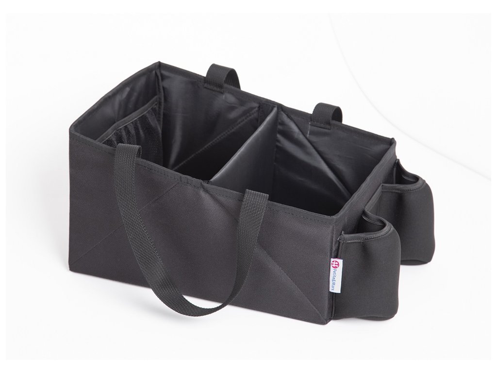 Velký vnitřní prostor s přihrádkami a síťovanými kapsami Vám umožní přehledně uspořádat věci a uklidit prostor v autě za velmi krátkou dobu. V přední části boxu se nacházejí 2 držáky na láhve či termosky. Box můžete využít k uskladnění hraček, jídla, plenek, utěrek, cokoli vás napadne.