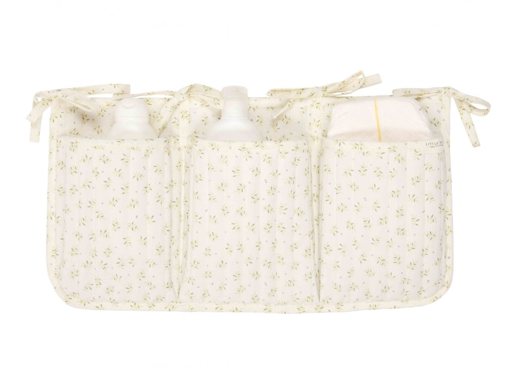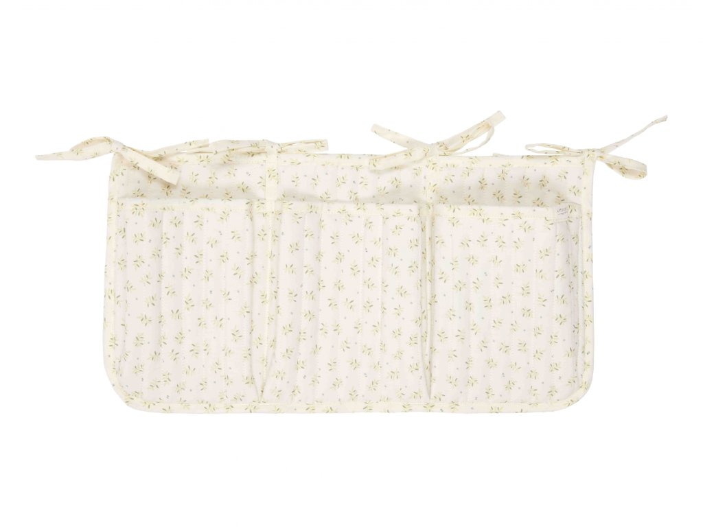 Praktický závěsný organizér v krásném provedení s něžným potiskem vám umožní mít vše potřebné pro péči o vaše miminko vždy po ruce. Organizér ze 100% organické bavlny nabízí tři prostorné kapsy pro uložení dudlíků, bryndáčků, plen, ubrousků, hraček apod. Pomocí praktických vázacích šňůrek jej snadno připevníte k přebalovacímu pultu, na stěnu či na postýlku. Organizér je součástí designové kolekce textilu a doplňků Little Dutch Blueberry Leaves. Složení: 100% organická bavlna Rozměry: 42 x 22 cmDoplňkové parametry
