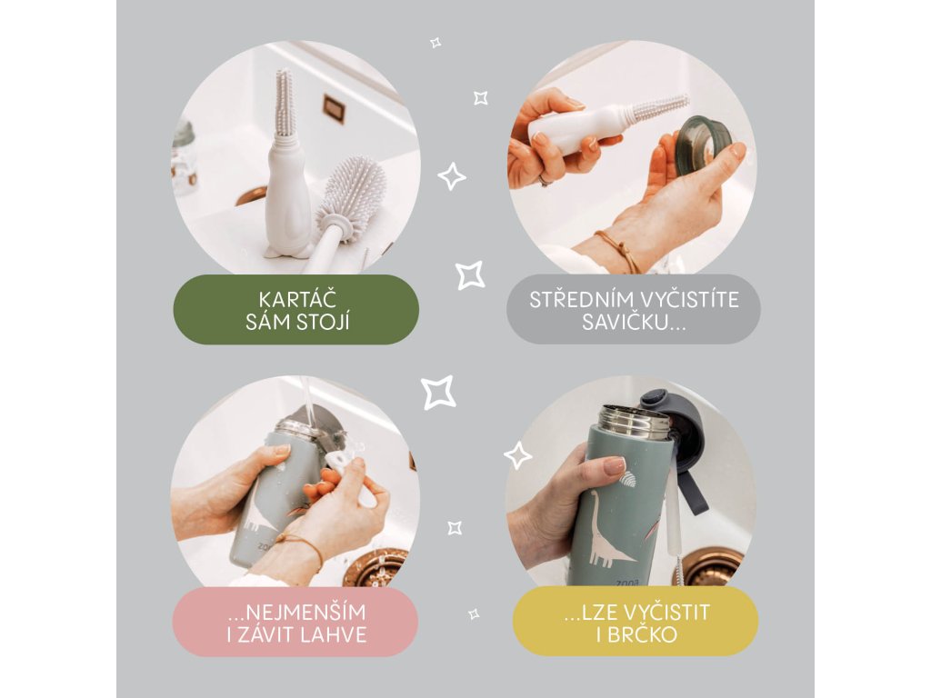 Objevte všestranného pomocníka pro snadné a důkladné čištění všech dětských lahví bez obav z poškrábání. Tento inovativní silikonový kartáč 3v1 nabízí různé čisticí plochy, které vám pomohou dosáhnout dokonalé hygieny i v těžko dostupných místech.