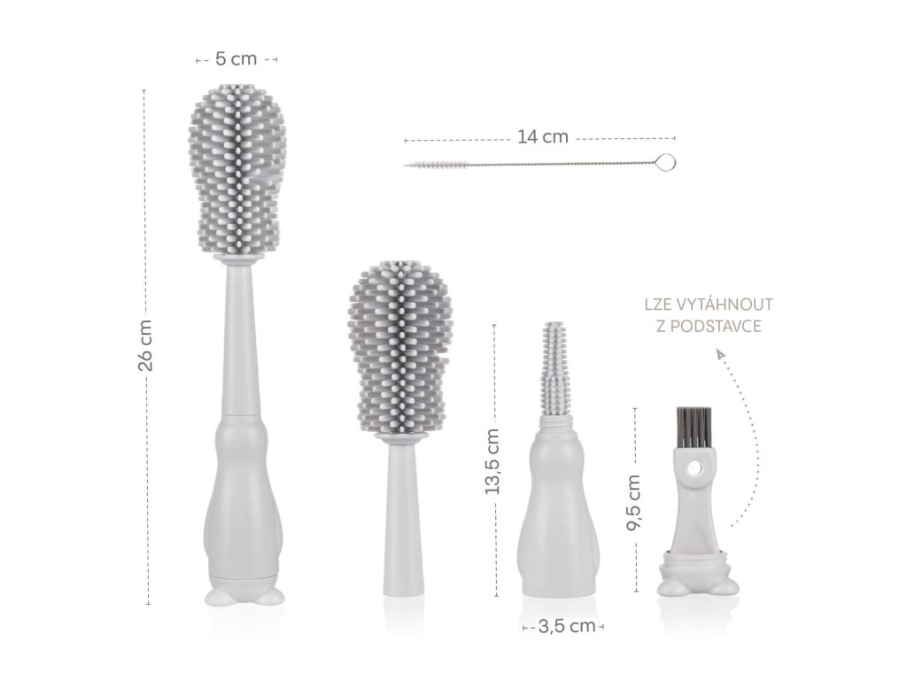 ZOPA Silikonový kartáč na dětskou lahev 3v1, Light Grey