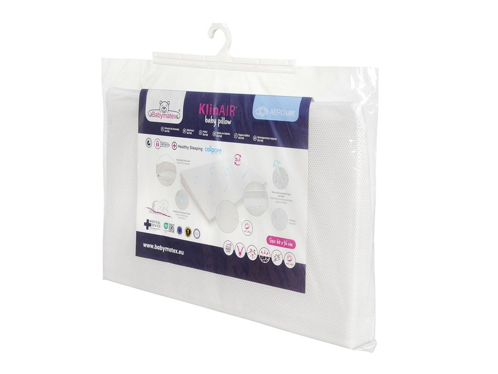 Dětský polštář MATEX KLIN AIR 60x36 poskytuje optimální podporu a pohodlí pro miminka. Vyrobeno z prodyšných, hypoalergenních materiálů, podporuje správné dýchání a snižuje riziko udušení. Ideální do postele, snadno se čistí a je odolný.