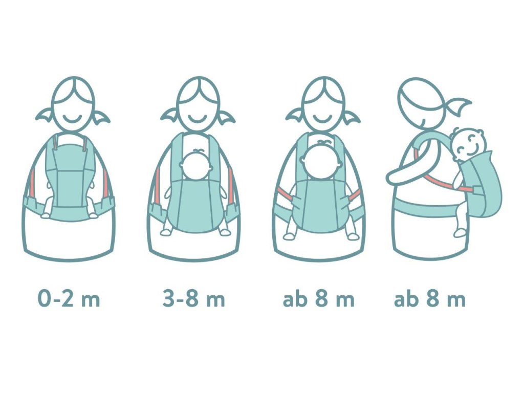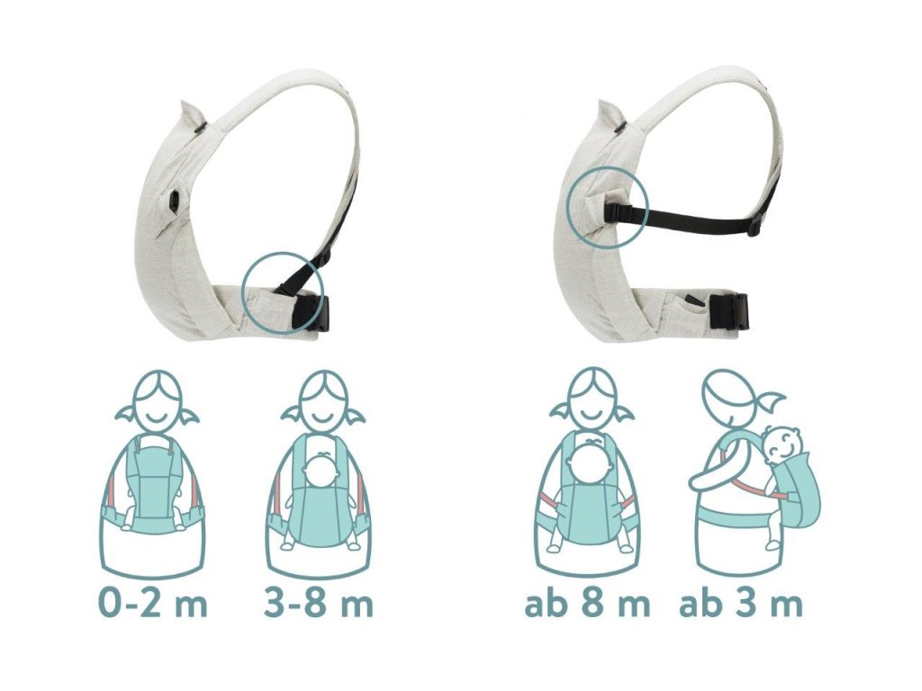 Až bude vaše sluníčko starší, můžete nosič použít i jako nosič na záda. Díky snadno přístupným přezkám na bederním pásu a klopám lze nosič nasadit i sám bez pomoci. Lze použít jako zádový nosič. Lze prát v pračce. Včetně odnímatelné opěrky hlavy.