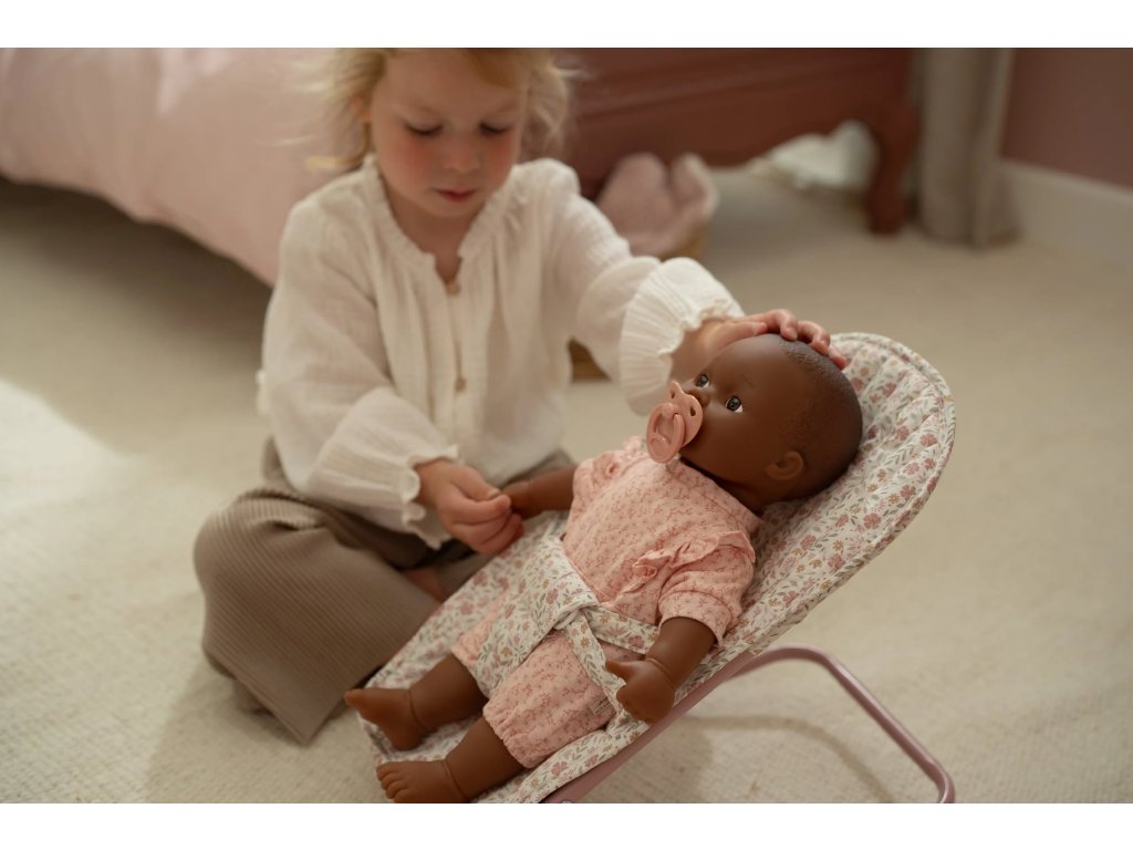 Lehátko pro panenky Little Dutch nabídne každé panence nebo plyšákovi pohodlné místo k odpočinku. Díky lehké kovové konstrukci se snadno přenáší, přitom je stabilní a bezpečné. Měkké polstrování a pevný bezpečnostní pás zajistí, že panenka zůstane v lehátku pohodlně a pevně usazená. Měkké polstrované lehátko pro pohodlí panenky Bezpečnostní pás pro stabilní a bezpečné sezení panenky Lehký rám pro snadnou manipulaci Kompaktní velikost vhodná i k dětskému stolku Stylový květinový design krásně ladí s dalšími doplňky pro panenky z kolekce Little Dutch Soft Flowers. Rozměry: 38,5 × 24 × 27 cm Panenka není součástí balení. Vhodné pro děti od 3 let.Doplňkové parametry