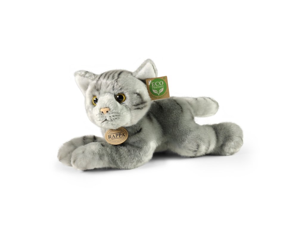 Rappa Plyšová kočka šedá ležící 30 cm ECO-FRIENDLY