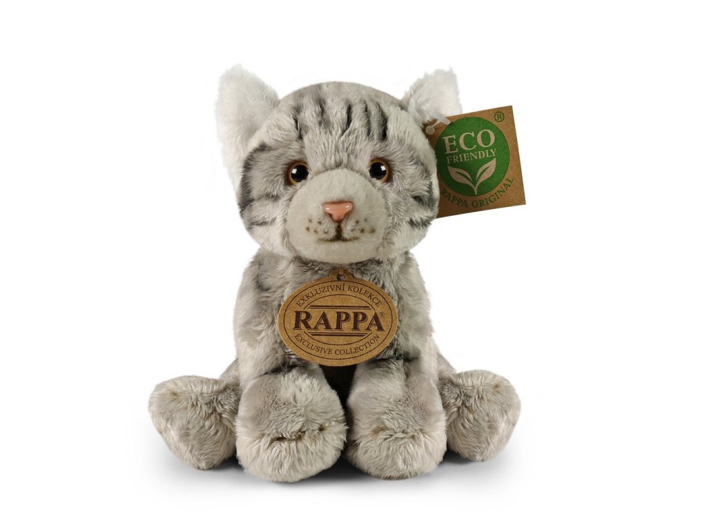 Rappa Plyšová kočka sedící šedá 14 cm ECO-FRIENDLY