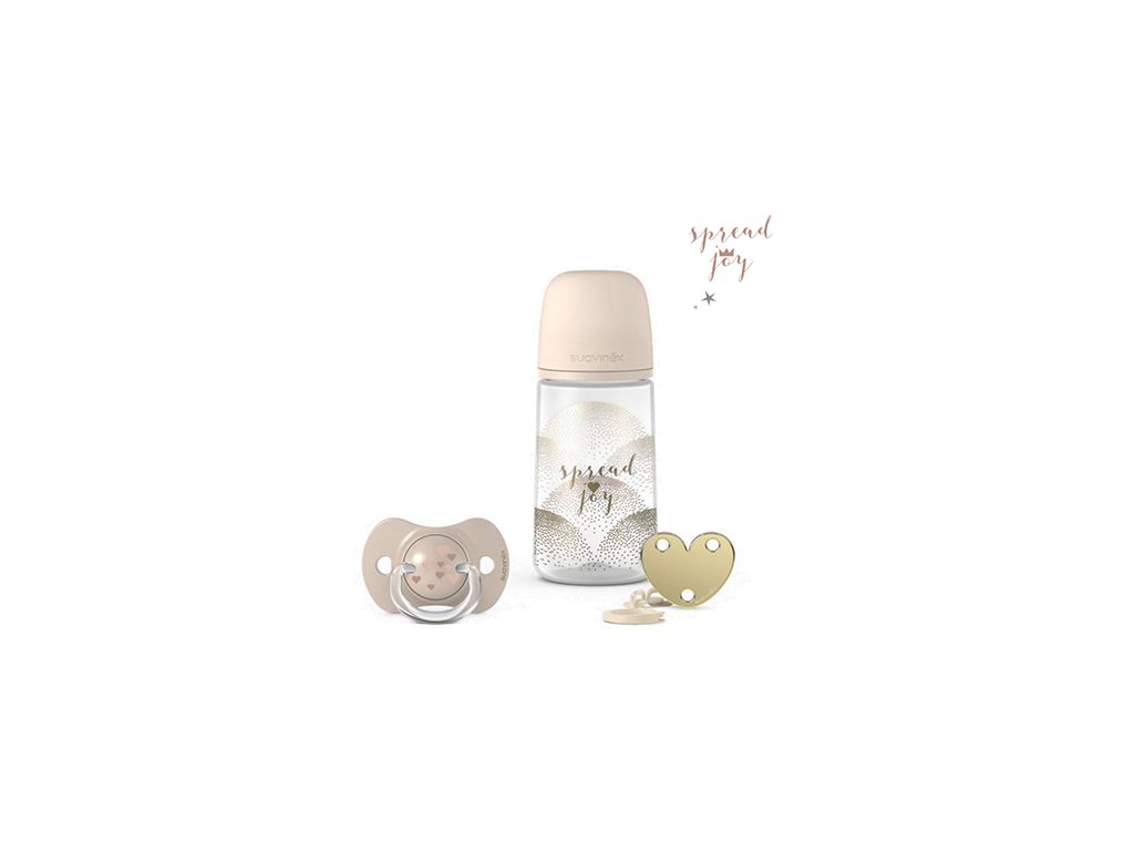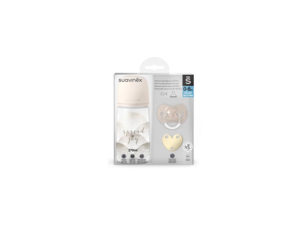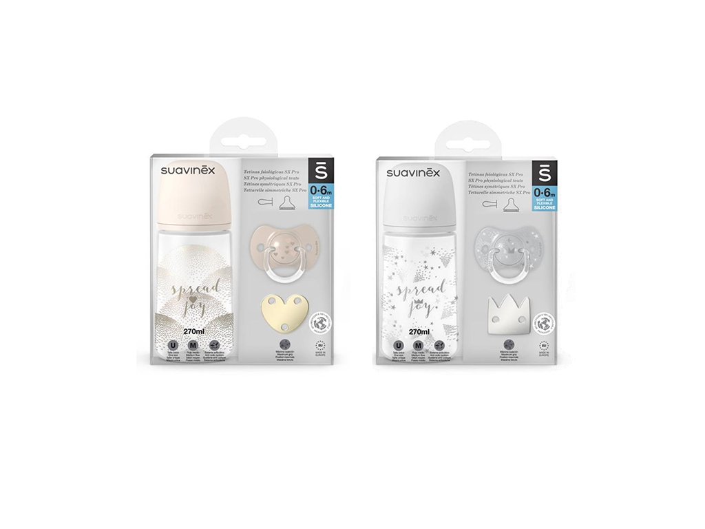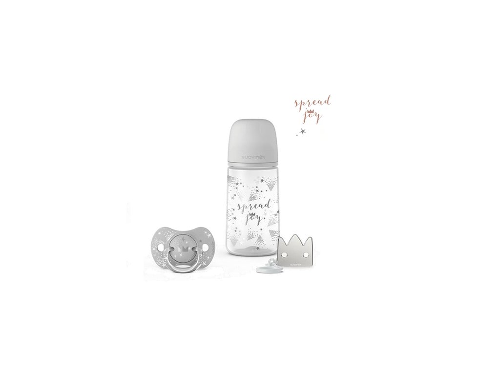 SAUVINEX SUAVINEX | SADA LÁHEV 270ml + dudlík fyziologický 0/6m + klip JOY - stříbrná