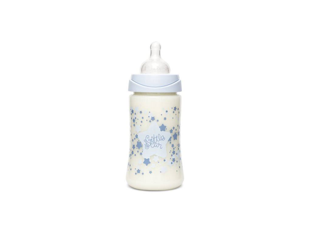- 1 ks - širokohrdlá kojenecká láhev (150 ml, silikonová savička s pomalým průtokem, +0 m)