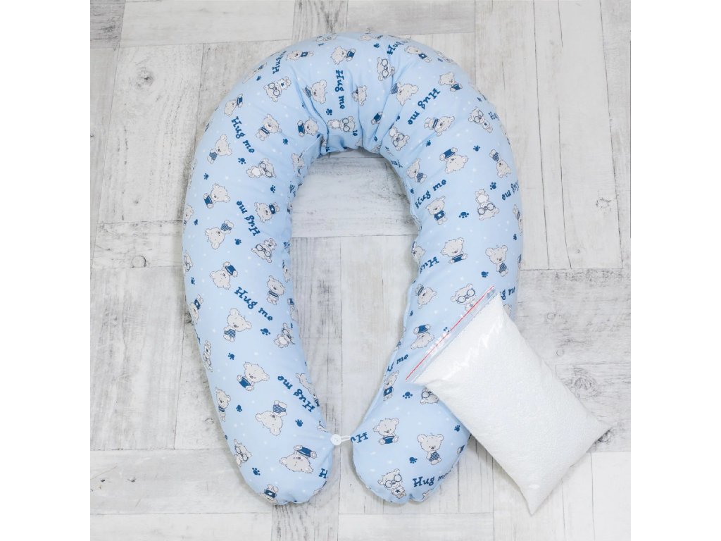 Jemné a přitom praktické provedení těhotenského kojícího polštáře. Vlastnosti: - těhotenský kojící polštář umožňuje vytvoření ideální polohy při kojení jak matce, tak dítěti, zvláště v prvních týdnech a měsících, kdy je kojení častější a delší, zabraňuje vzniku bolestí zad a nebo ji výrazně zmírňuje - díky kojícímu polštáři můžete kojit ve více pohodlných polohách - kojící polštář je naprosto ideální při kojení dvojčat - rozšířená střední část umožňuje vytvořit pohodlnou a stabilní polohu miminku a zúženými konci lze pohodlně podepřít záda maminky, díky tomuto tvaru nikde nic nepřebývá ani nechybí - kuličky poskytují ideální oporu mamince i dítěti, nejsou příliš měkké ani tvrdé a vždy se ideálně vytvarují podle potřeby. - na rozdíl od polyuretanové (molitanové) náplně se v nich nedrží roztoči a nenasakují tekutiny. - ve vnitřním vaku je jednoduše uzavíratelný otvor, kterým je možné přisypat nebo ubrat náplň - jednoduché čištění a údržba - Kojenecký polštář je součástí kolekce Teddy bears. Materiál: - vrchní povlak: 100 % bavlna Jersey - sypek: vnitřní část kojícího polštáře: 100% bavlněné plátno - náplň: speciálně čištěné, zdravotně nezávadné EPS mikroperličky 1 – 3 mm Rozměry: - délka 190 cm, šířka 33 cm (v nejširším místě), náplň cca 40 litrů Údržba a praní: - pokud chcete vyprat vnitřní vak je třeba nejprve vysypat EPS (polystyrenové) kuličky zcela ven a poté platí stejná údržba jako na vrchní povlak - vrchní povlak: praní v pračce na 40°C, nebělit, chemicky nečistit, nesušit v sušičce prádla Doporučení: - před prvním použitím doporučujeme vrchní povlak kojícího polštáře vyprat, z tohoto důvodu je dodáván polštář nepovlečený. Polštář je z výroby naplněn více, proto je možné, že bude na počátku třeba před prvním navléknutím potahu trochu náplně odsypat - sypek - je opatřen otvorem, který se zapíná zdrhovadlem, díky kterému máte možnost dle vlastní potřeby regulovat množství náplně. Náplň se časem zmenší a lze ji díky otvoru snadno doplnit. Po doplnění uzavřete zdrhovadlo a zajistěte tak, jak je to provedeno již z výroby, aby nedošlo k jeho samovolnému otevření. Používáním dochází ke zmenšování objemu EPS kuliček a sypek se tím pádem stává měkčím. Jedná se o přirozený jev a je s ním třeba počítat u všech výrobků této konstrukce. Pro doplňování prodáváme náhradní náplně polystyrenových kuliček. Doporučujeme používat náhradní náplň dodanou výrobcem. Bezpečnost: - nikdy nenechávejte děti bez dozoru dospělé osoby pokud jsou na polštáři, nebo si s ním hrají. Zabraňte kontaktu polštáře s ostrými předměty, mohlo by dojít k jeho protržení a vysypání obsahu. V případě vdechnutí náplně okamžitě kontaktujte lékaře. - z bezpečnostních důvodů je zip našitý v jedné z noh sypku. Pokud by se potah kojícího polštáře nedopatřením odepl, tak nehrozí, že se miminko dostane k druhému zipu na sypku a tudíž nehrozí nebezpečí spolknutí polystyrenových kuliček. Je proto třeba povléknou vrchní potah tak, aby zdrhovadlo bylo na druhé straně než u sypku. Záruka kvality: - výrobek je navržen, vyroben a zabalen na území Česka - jedná se tedy o 100% český výrobek té nejvyšší kvality - samozřejmostí je dvouletá záruka - značkový výrobek ESITO® Kvalitní český výrobek. Vyrobeno s péčí a láskou k dětem v podhůří Orlických hor. Rodinná firma ESITO je 100% český výrobce s vlastním vývojem a stylem. Naší prioritou je nejvyšší možná kvalita, funkčnost, praktičnost a zároveň dobrá cena.Doplňkové parametry