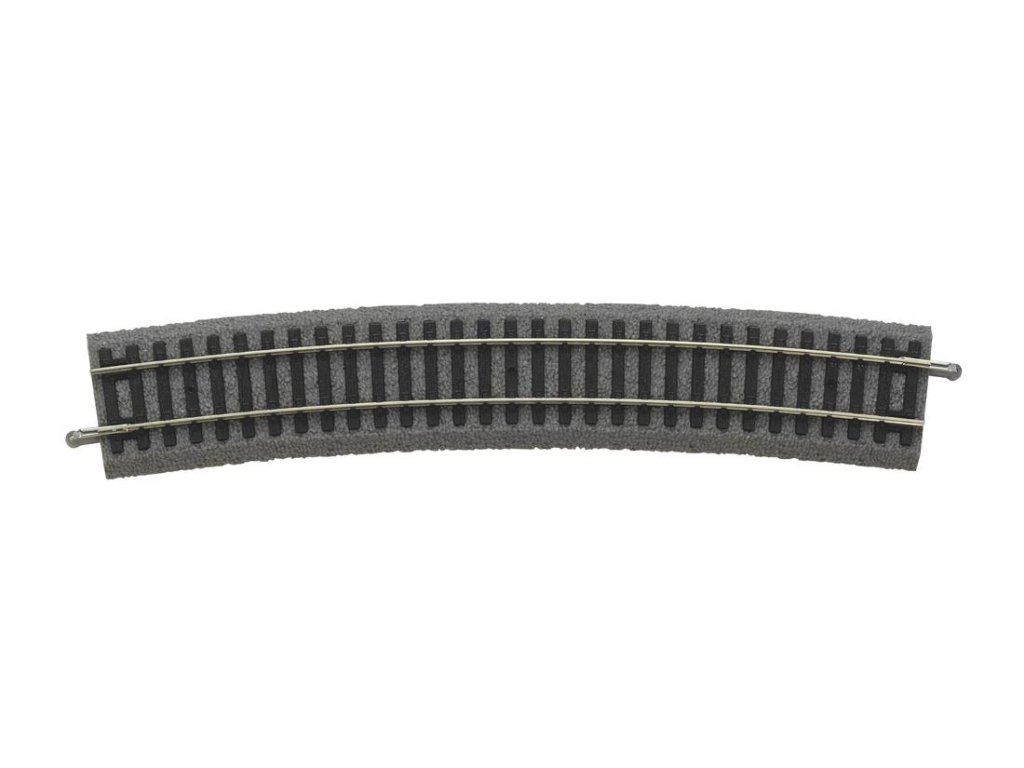 Oblouková kolej s detailní reprodukcí dřevěných pražců na štěrkovém podloží, ve věrných barvách. Hlavní vlastnosti: 15° poloměr (R9) 908 mmvčetně podloží Dokumentace: Brožura ke kolejivu PIKO H0 A-Gleis (DE, EN)Sizing info