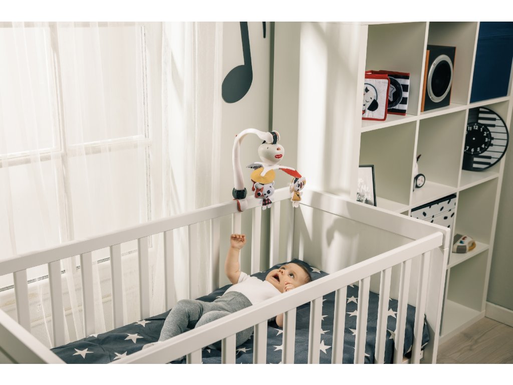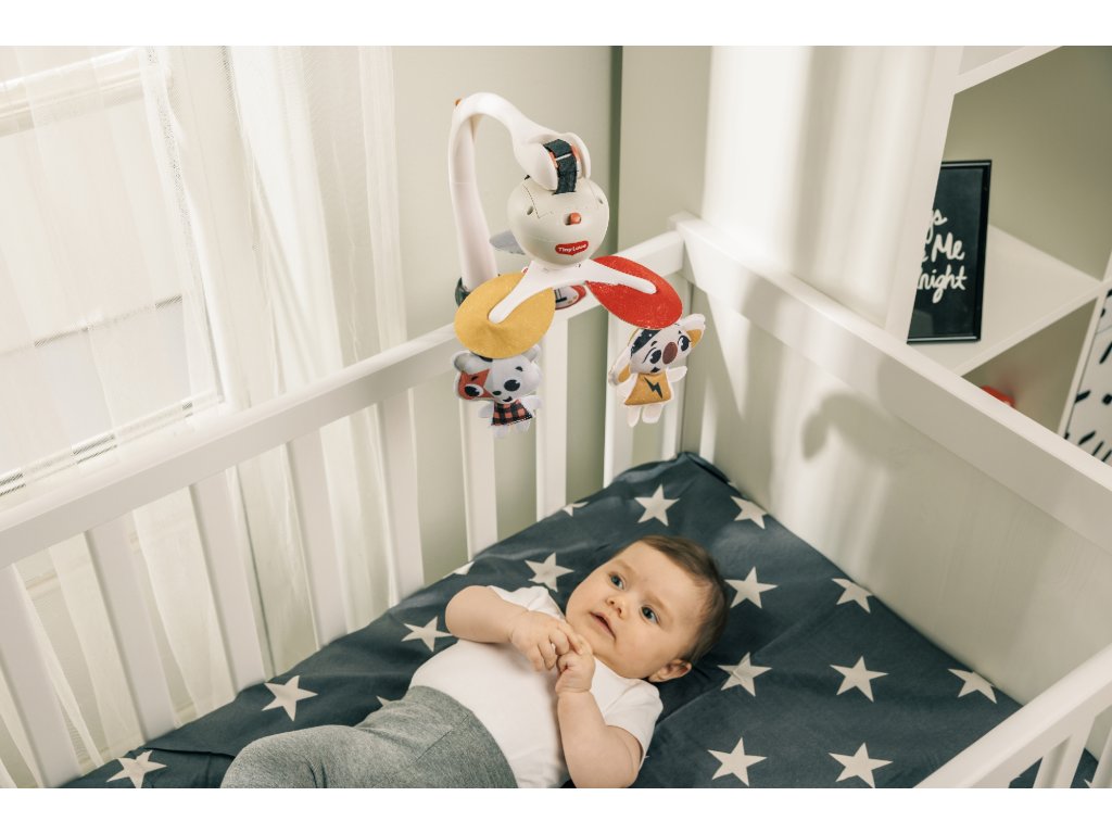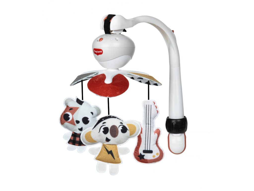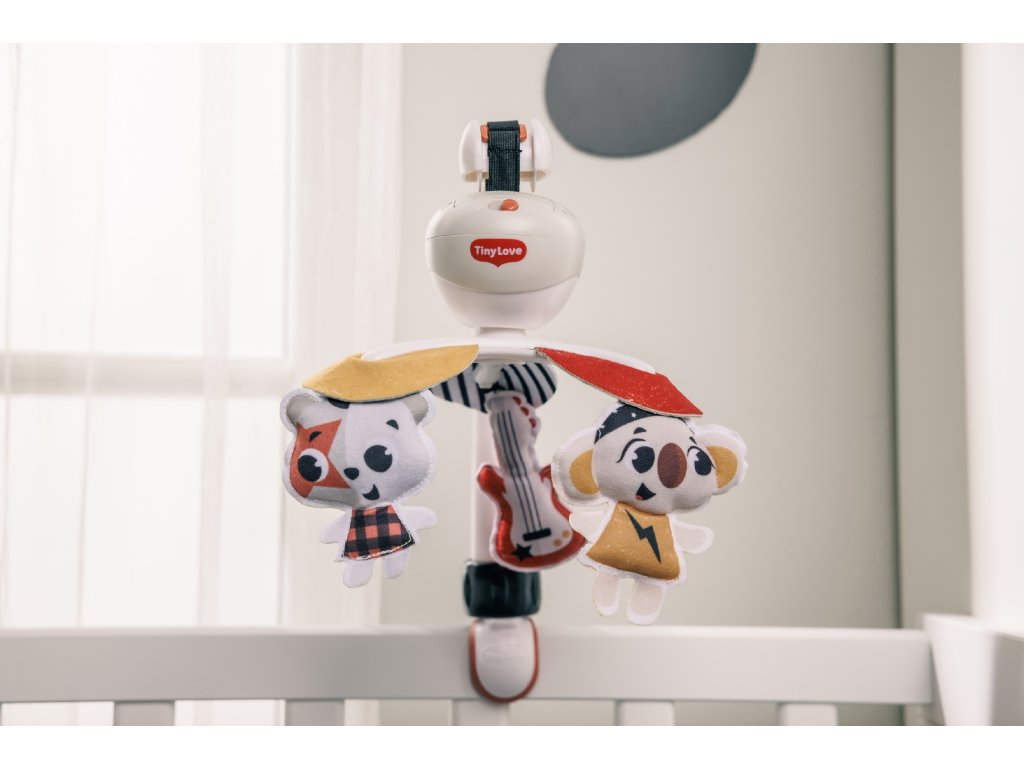 Hudební kolotoč Tiny Love hraje až 30 minut 5 různých melodií. Pozornost dítěte upoutají otáčející se hračky ve vysoce kontrastním barevném provedení. Kolotoč nabízí tři různé způsoby uchycení: univerzální úchyt je vhodný např. na cestovní postýlku, klip je ideální na uchycení na kočárek, pásek se suchým zipem umožňuje uchycení na autosedačku. Kolotoč tak vaše dítě zabaví doma i kdekoli na cestách. Baterie 3× AA nejsou součástí. Vhodné od narození do 5 měsíců.Doplňkové parametry