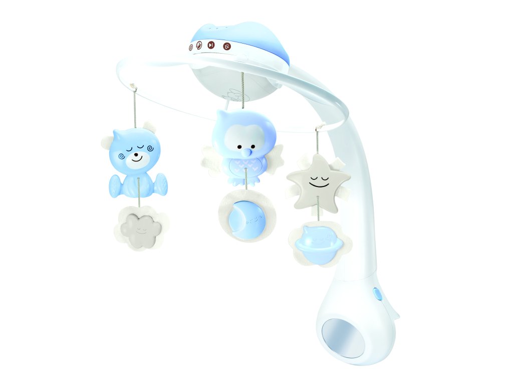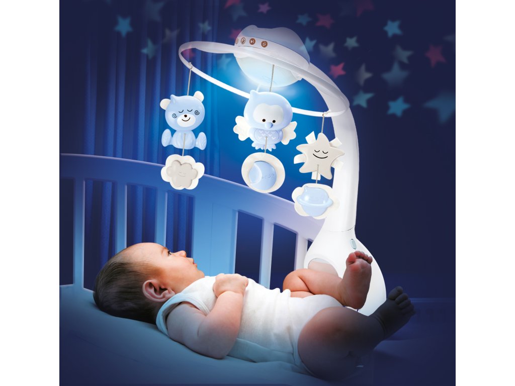Hudební kolotoč pro snadné usínání i zabavení dítěte nabízí 3 možnosti použití: hudební kolotoč pro děti od narození do 5 měsíců noční světýlko a projektor do postýlky pro děti od 6 do 18 měsíců noční světýlko a projektor na noční stolek pro děti od 18 měsíců Světelný projektor promítá na stěnu či strop hvězdičky a jemně tak osvítí dětský pokoj. Spolu s uklidňující melodií pomůže vašemu dítěti v klidu usínat. Nabízí na výběr z deseti uklidňujících melodií a zvuků přírody. Baterie 3xAAA baterie nejsou součástí výrobku. Vhodné pro děti od narození.Doplňkové parametry