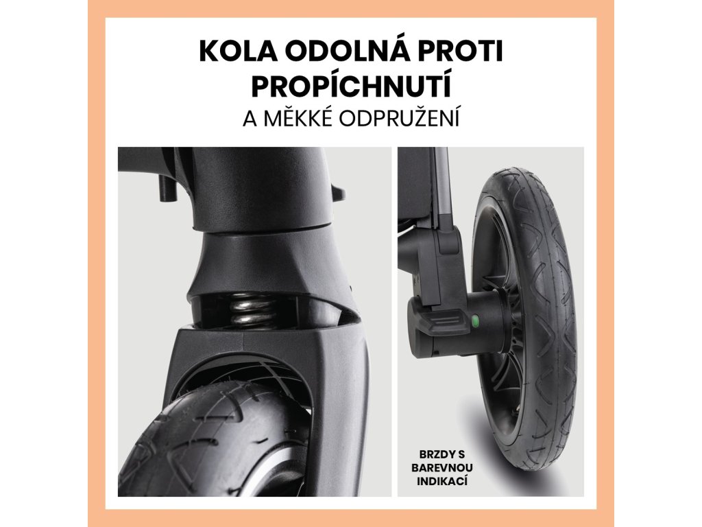 KOLA ODOLNÁ PROTI PROPÍCHNUTÍ A OBZVLÁŠTĚ MĚKKÉ ODPRUŽENÍ // Do města či do přírody: s robustním hliníkovým rámem, velkými GUMOVÝMI koly odolnými proti propíchnutí a odpružením 4x4, jste dobře vybaveni do každého terénu. Ještě větší pohodlí a bezpečnost vám nabízí brzdový systém s barevným indikátorem.