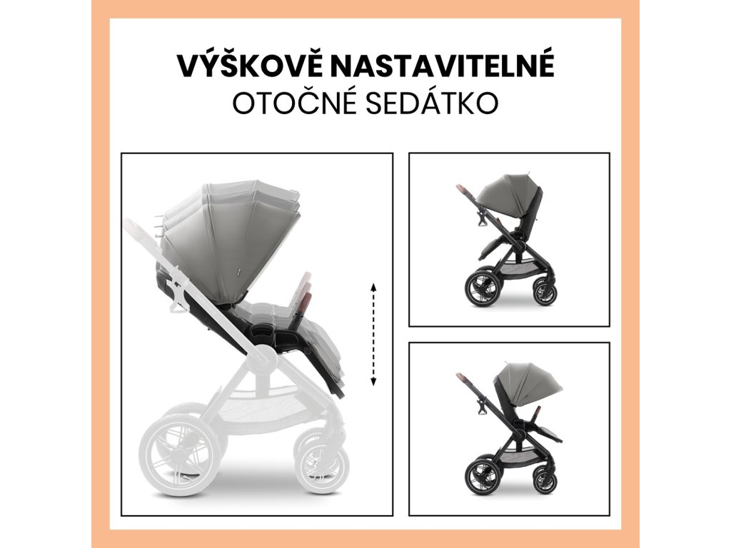 POHODLNÉ SEDÁTKO SE DVĚMA SMĚRY POHLEDU // Na zmrzlinu, na kávu či do parku: všude se vám kočárek dokonale přizpůsobí díky výškově nastavitelnému otočnému sedátku, navíc s extra dlouhým sezením a polohováním poskytuje maximální pohodlí v každé situaci.