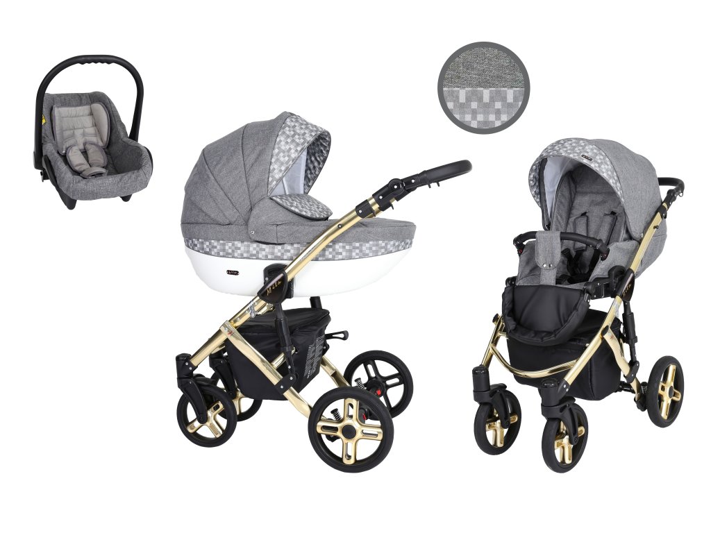 KOČÁREK KUNERT MILA PREMIUM 2022 2V1 ZLATÝ RÁM Šedá kostičky