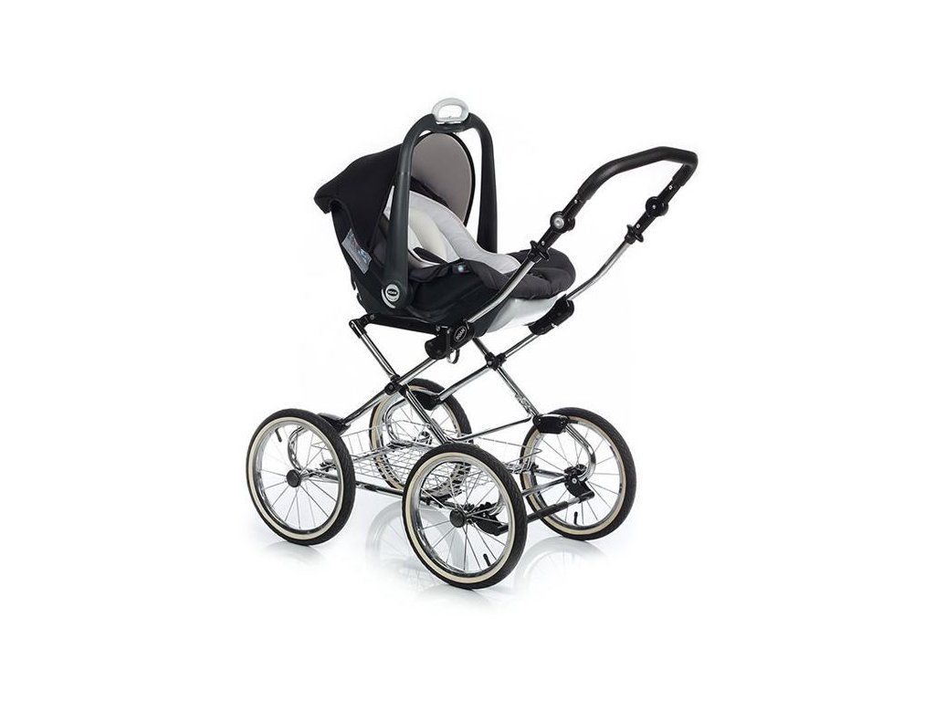 Kočárek je dodáván od výrobce v šedo-stříbrném provedení konstrukce, za příplatek 400,-Kč dodáváme luxusní variantu na chromové konstrukci (viz. foto). V případě objednávky napište do objednávky (kolonka Poznámky) požadovaný typ koleček a konstrukce.