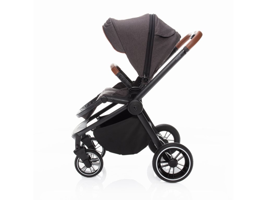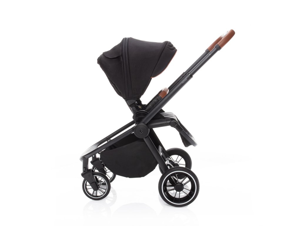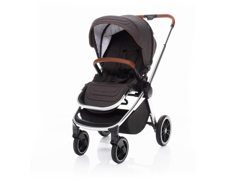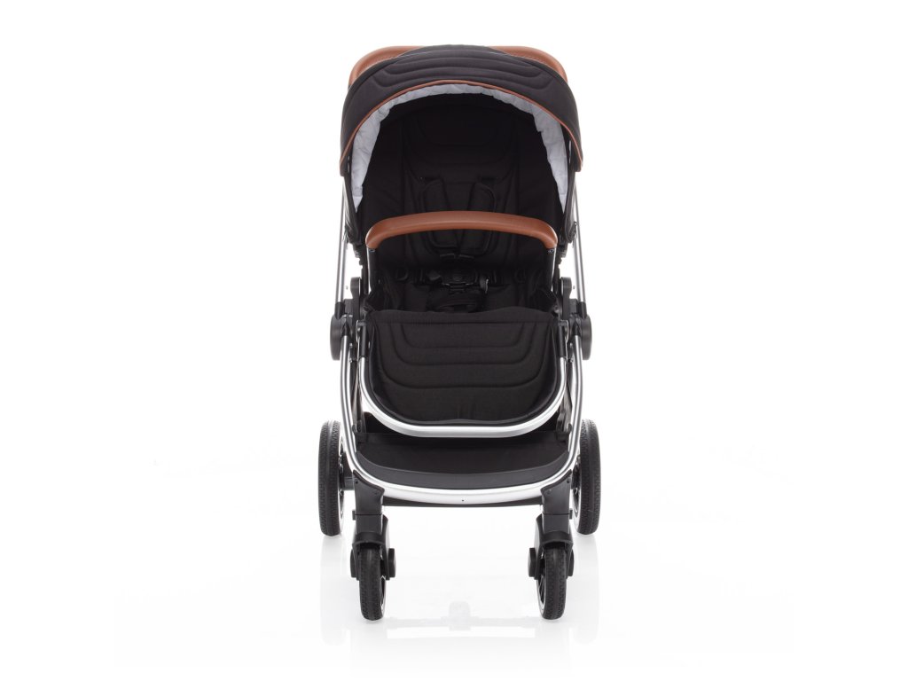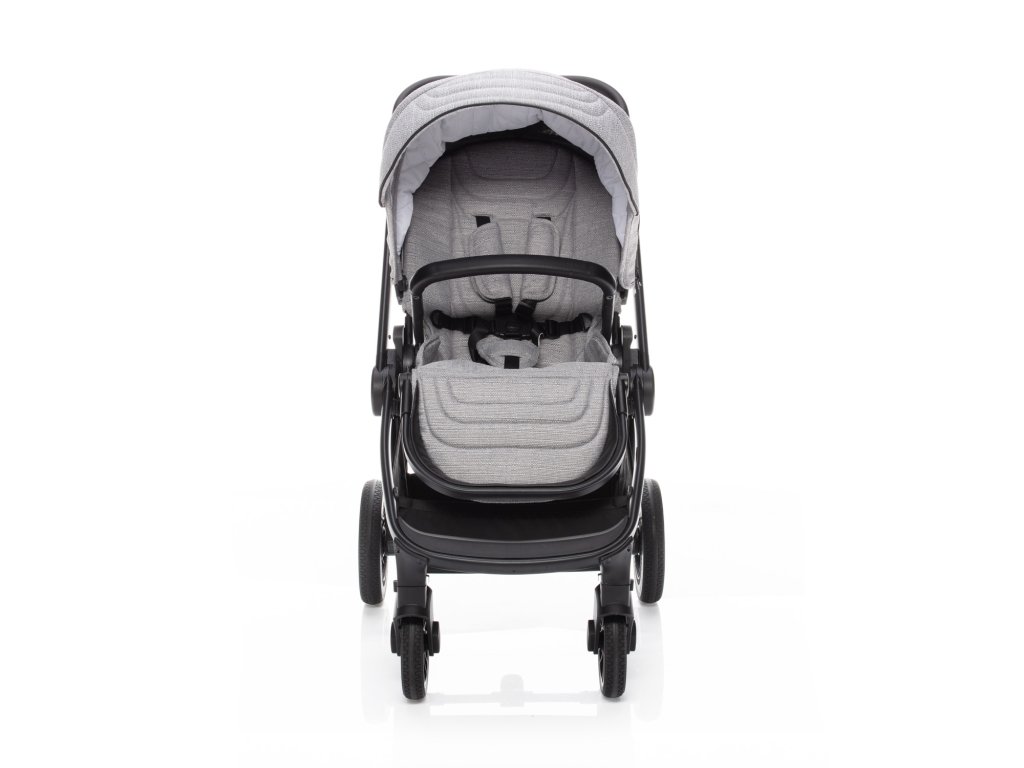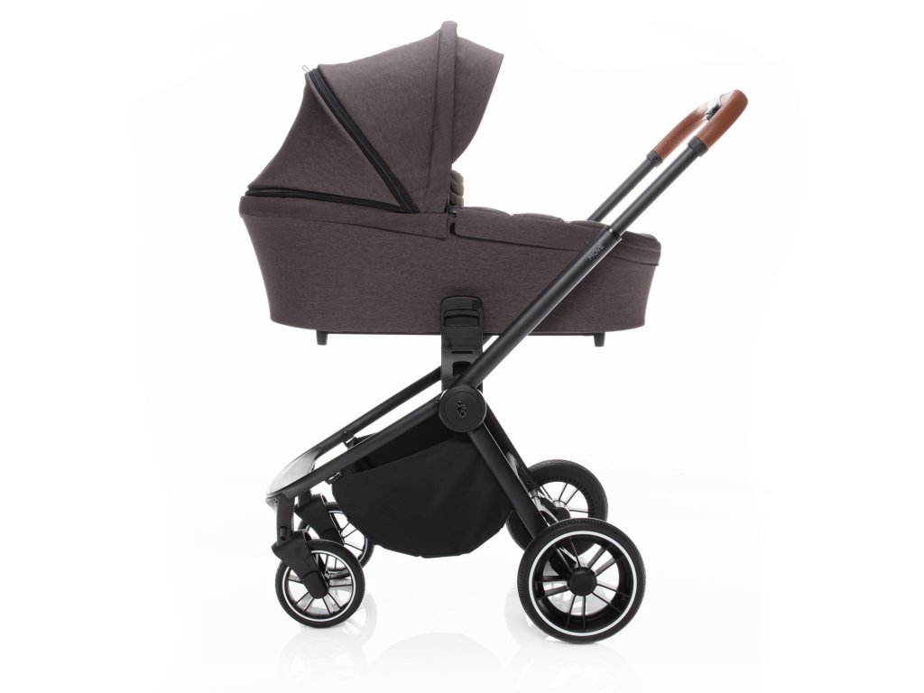 Pokud jste vyššího vzrůstu, u kočárku jistě oceníte výškově nastavitelnou rukojeť, která je, stejně jako hrazda, vyrobena z eko-kůže. Což ještě více podtrhuje moderní vzhled kočárku. Pro snadnější manipulaci můžete hrazdu hbitě odepnout a odklonit na stranu. Tím si usnadníte vkládání dítěte do kočárku. Samozřejmostí je také bezpečné připoutání 5bodovým bezpečnostním pásem a pro zajištění kočárku samozřejmě nechybí ani centrální brzda.
