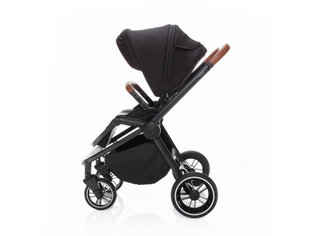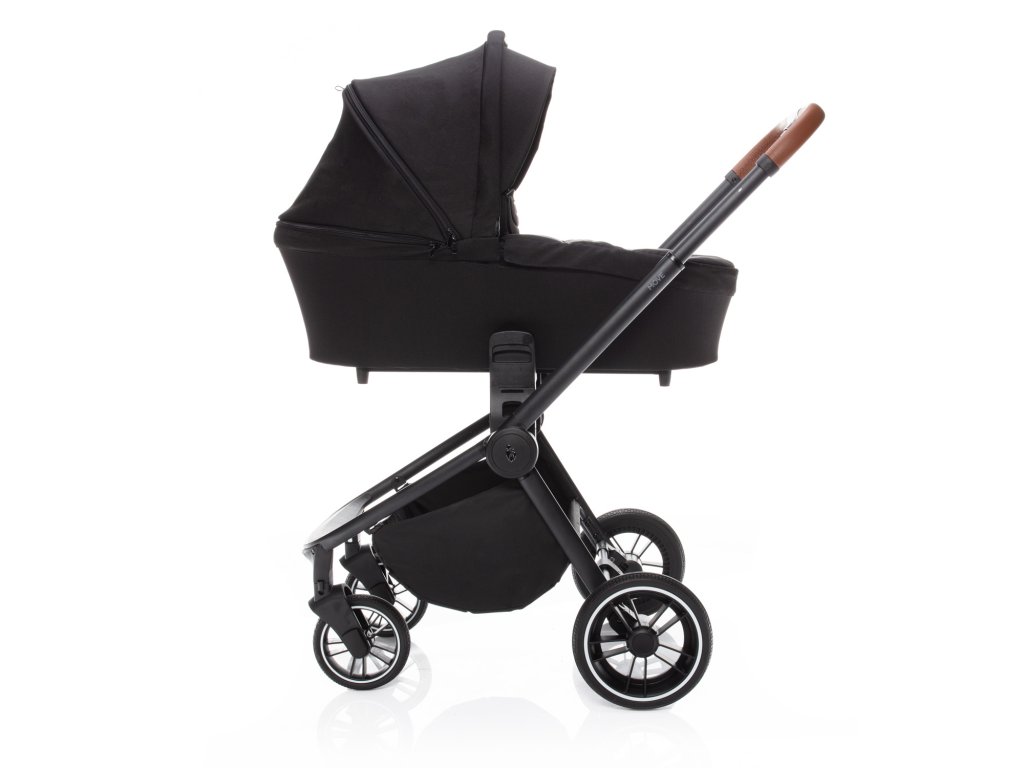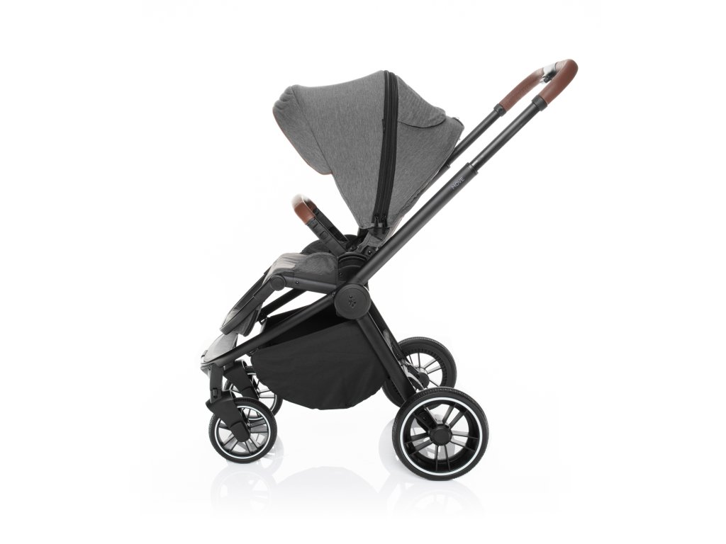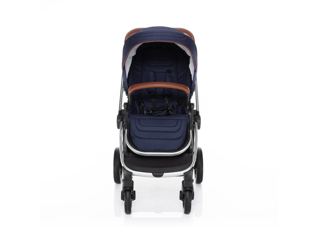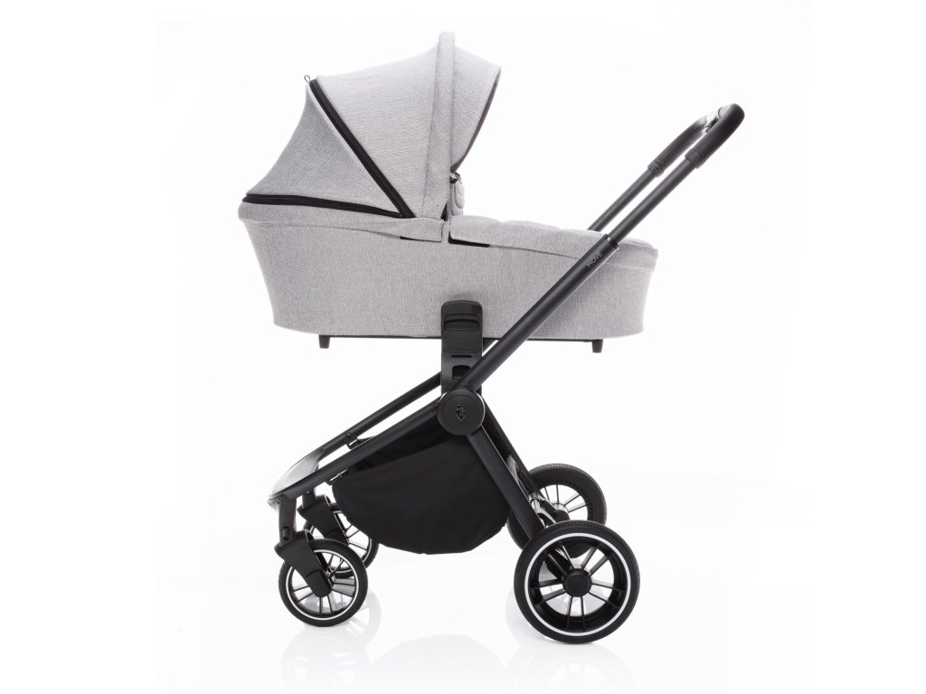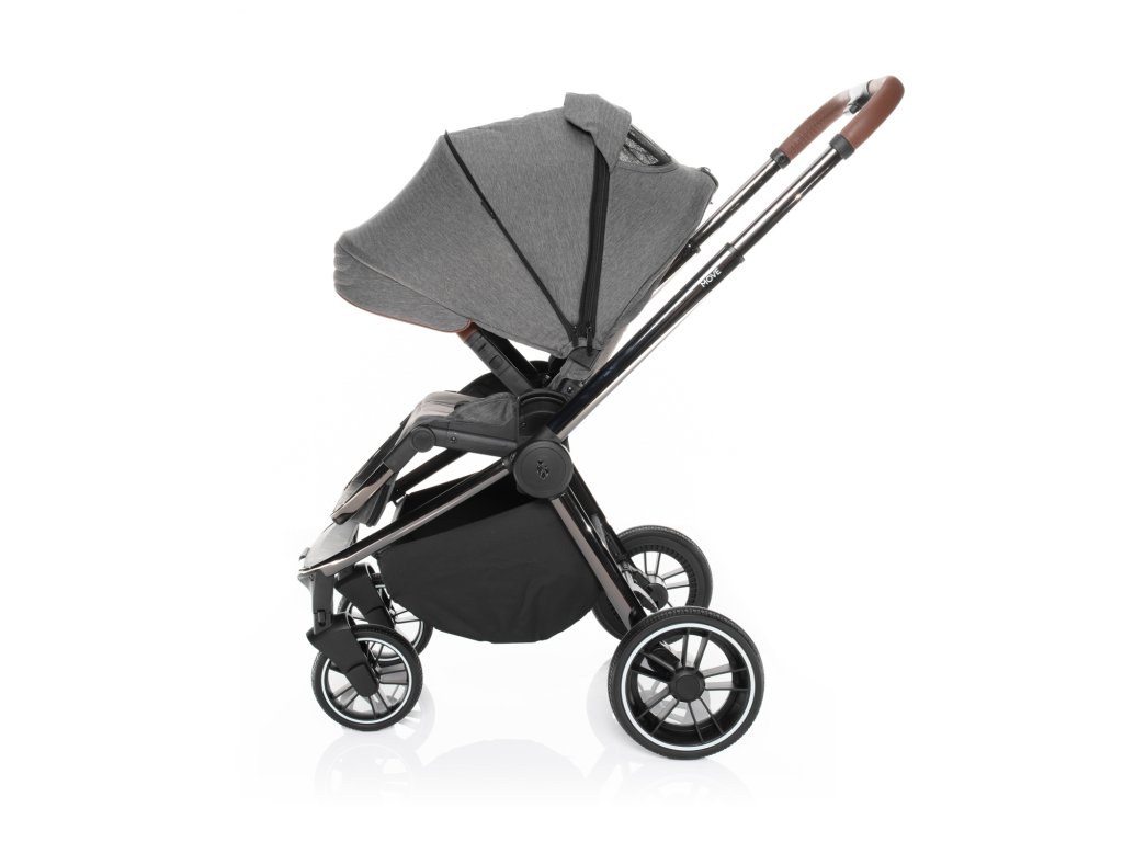 Pokud jste vyššího vzrůstu, u kočárku jistě oceníte výškově nastavitelnou rukojeť, která je, stejně jako hrazda, vyrobena z eko-kůže. Což ještě více podtrhuje moderní vzhled kočárku. Pro snadnější manipulaci můžete hrazdu hbitě odepnout a odklonit na stranu. Tím si usnadníte vkládání dítěte do kočárku. Samozřejmostí je také bezpečné připoutání 5bodovým bezpečnostním pásem a pro zajištění kočárku samozřejmě nechybí ani centrální brzda.