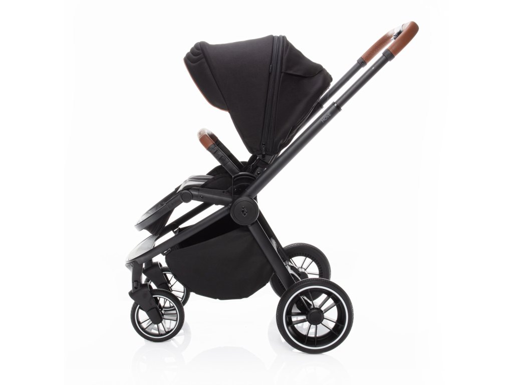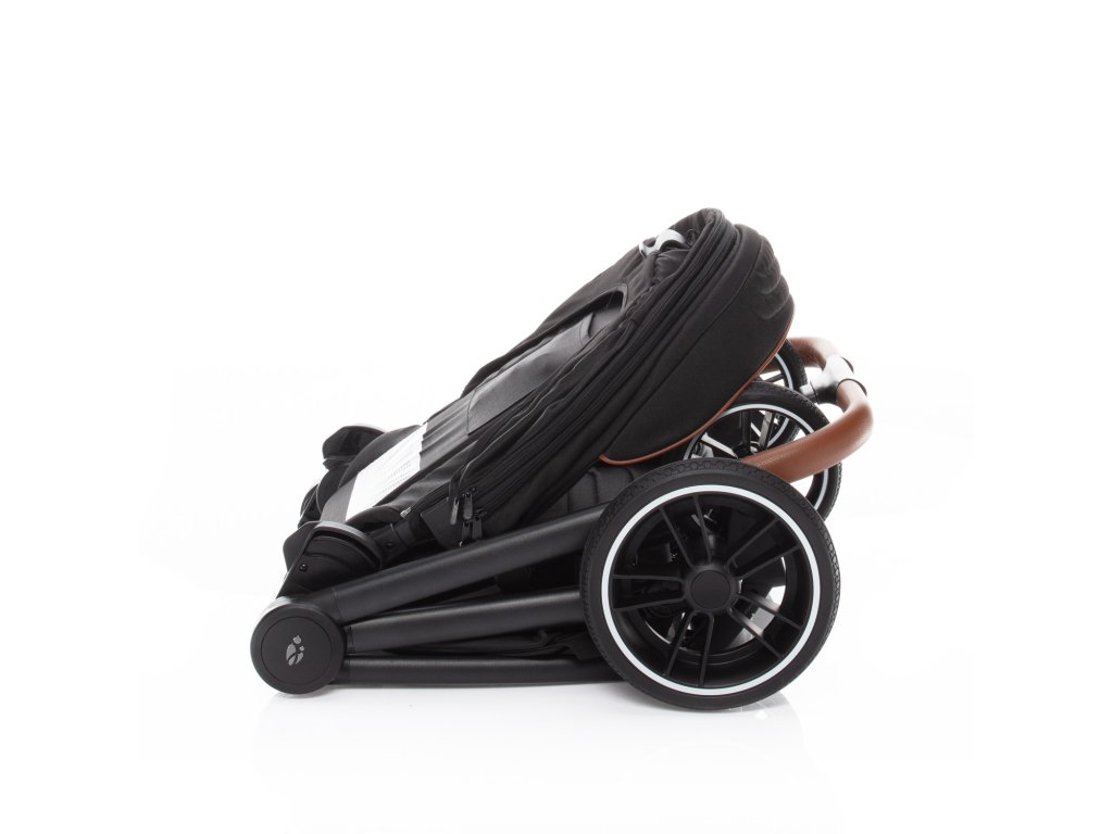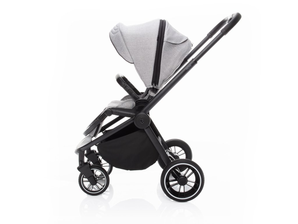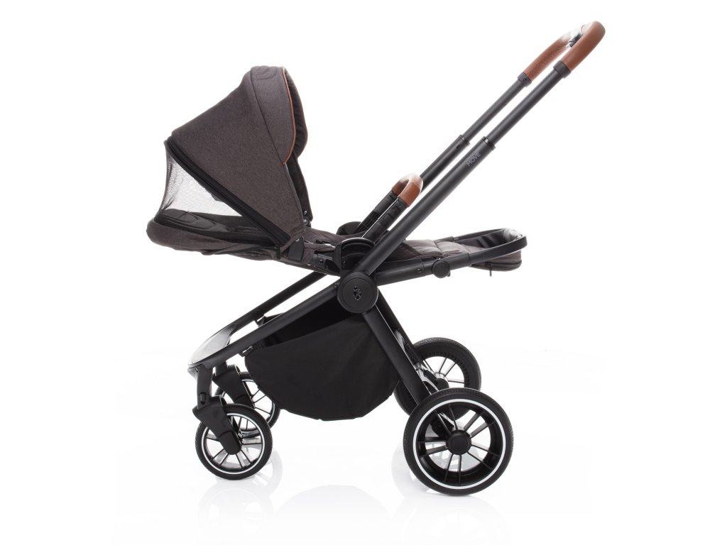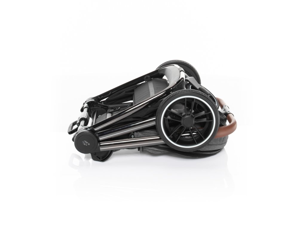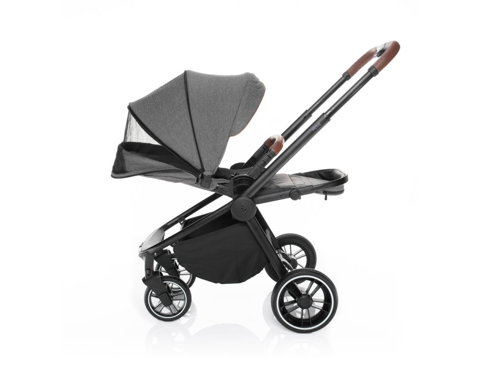 Pokud jste vyššího vzrůstu, u kočárku jistě oceníte výškově nastavitelnou rukojeť, která je, stejně jako hrazda, vyrobena z eko-kůže. Což ještě více podtrhuje moderní vzhled kočárku. Pro snadnější manipulaci můžete hrazdu hbitě odepnout a odklonit na stranu. Tím si usnadníte vkládání dítěte do kočárku. Samozřejmostí je také bezpečné připoutání 5bodovým bezpečnostním pásem a pro zajištění kočárku samozřejmě nechybí ani centrální brzda.