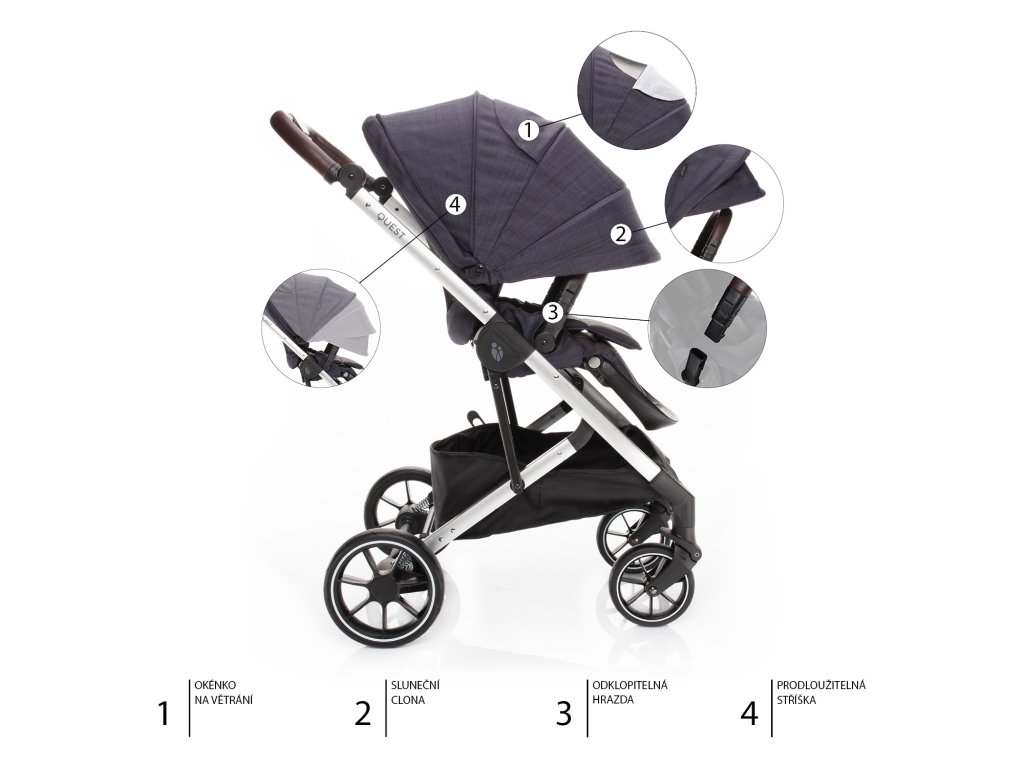 Set kočárku Quest s hlubokou korbou a novorozeneckou autosedačkou XM Plus i-Size s bází zajistí děťátku maximální pohodlí a bezpečí venku na procházkách i na cestách autem. Kočárek uveze dítě až do 22 Kg.