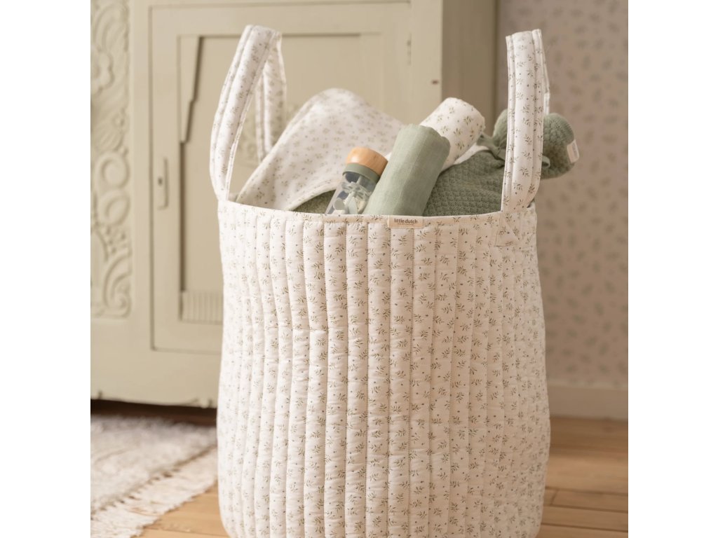 Extra velký úložný košík Little Dutch pomůže udržet dětský pokoj krásně uklizený. Je ideální na hračky, plyšáky, deky apod. a díky svému elegantnímu designu se stane stylovým doplňkem každého interiéru. Oboustranné provedení umožňuje volbu vzhledu košíku dle vašich preferencí. Velkorysý úložný prostor - perfektní pro přehledné ukládání hraček, oblečení či doplňků Pohodlné přenášení - praktické textilní úchyty usnadňují manipulaci a přenášení Měkký a odolný materiál - vyroben z 100% organické bavlny, s prošívanou, polstrovanou strukturou, která působí luxusně a je příjemná na dotek Stylový design - jemný vzor Blueberry Leaves v odstínu zelené dodá pokojíčku přirozený a klidný vzhled Univerzální využití - hodí se jako praktický i dekorativní doplněk do dětského pokoje, herny i obývacího pokoje Košík je součástí designové kolekce textilních doplňků Little Dutch Blueberry Leaves. Složení: 100% organická bavlna, výplň 100% polyester Rozměry: 35 x 35 x 45 cm Možno prát v pračce.Doplňkové parametry