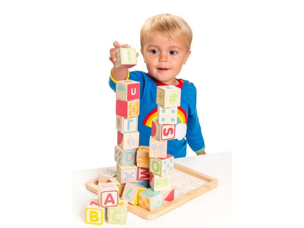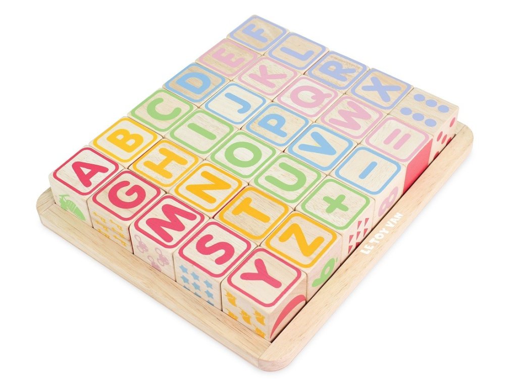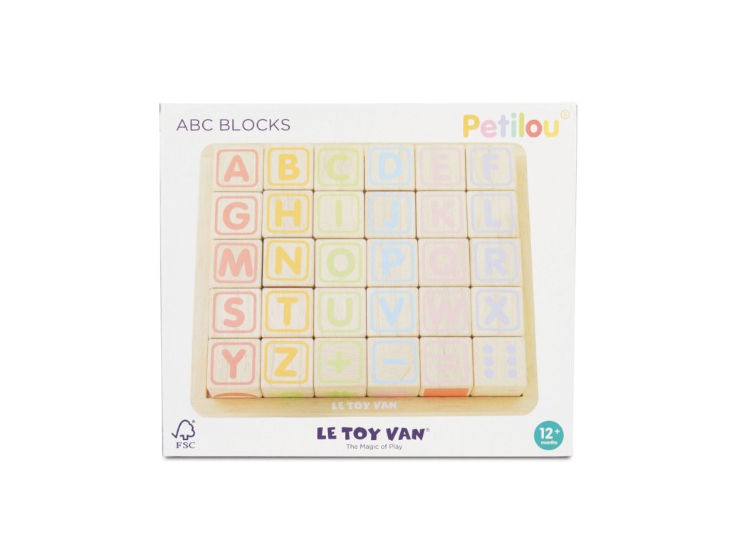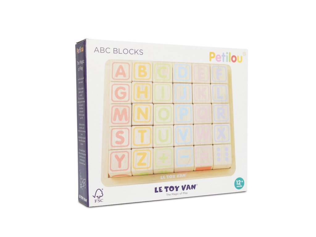 Naučte nejmenší děti abecedu zábavnou formou! Kostky jsou tradiční hmatovou hračkou, která rozvíjí zručnost, koordinaci ruka-oko, motoriku a prostorovou představivost. Každá z 30 kostek je ručně natištěna sítotiskem, každá je jedinečná. Kostky mají na každé ze stran jiný design – číslice, písmena, obrazce, zvířátka… Hračka je vyrobena z odolného kaučukového dřeva a malována barvami na bázi vody, které se neodlupují. Kostky i úložná deska mají zaoblené hrany, tato hračka bez obsahu plastu je tak bezpečná pro děti. Hračky s účelemVšechny hračky firmy Le Toy Van jsou vyrobeny s cílem – aby dlouho vydržely. Designovány s láskou zkušenými řemeslníky za použití etických praktik a udržitelných materiálů, které jsou laskavější k naší planetě. Hlavní vlastnosti: vyrobeno eticky z udržitelného dřevatestováno dle nejpřísnějších standardůmalováno netoxickými barvami na bázi vodyinspiruje k představivé hřerozvíjí kognitivní dovednostihračka bez obsahu plastu Ocenění hračky:Loved By Parents Best Buy Platinum Award 2018Early Years Five Star Excelence 2018Good Toy Guide Recommended Petilou kolekce: Kolekce pro nemluvňata a batolata od Le Toy Van obsahuje hlavně hmatové hračky, které mají nejmenším posloužit také jako učební prostředky. Kolekce je inspirována přírodou kolem nás a je navržena tak, aby rozvíjela smysly dětí pomocí rozdílných zvuků, textur, tvarů a hmotností. Děti tak od malička zapojí všechny své smysly. V kolekci najdete například skládačky, vkládačky, chodítka, … Značka a certifikát FSC® (Forest Stewardship Council) zaručuje, že dřevo, ze kterého byl produkt vyroben, nebylo vytěženo nelegálně a pochází z lesů obhospodařovaných šetrným či přírodě blízkým způsobem, ve kterém jsou dodržovány přísné environmentální a sociální požadavky. Značka FSC® na výrobku znamená, že svým nákupem pomáháte chránit lesy a podporujete šetrné, odpovědné či přírodě blízké hospodaření, díky kterému jsou naše lesy stabilnější, zdravější, mají přirozenou druhovou skladbu a lépe odolávají negativním následkům klimatických změn.Sizing info