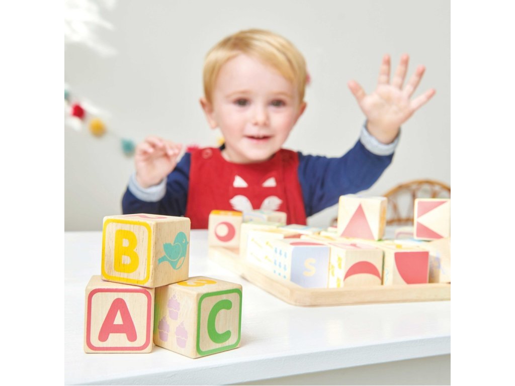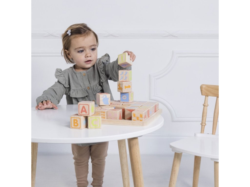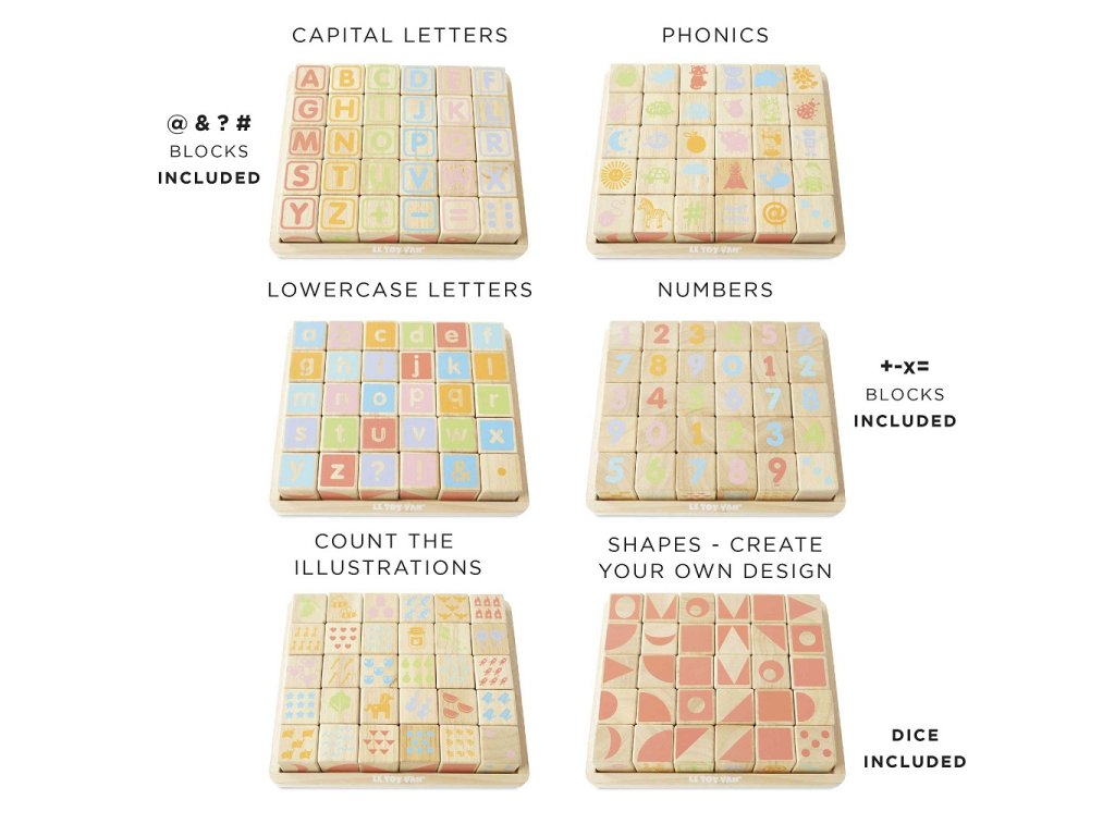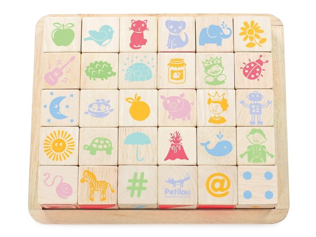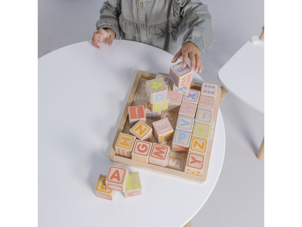 Naučte nejmenší děti abecedu zábavnou formou! Kostky jsou tradiční hmatovou hračkou, která rozvíjí zručnost, koordinaci ruka-oko, motoriku a prostorovou představivost. Každá z 30 kostek je ručně natištěna sítotiskem, každá je jedinečná. Kostky mají na každé ze stran jiný design – číslice, písmena, obrazce, zvířátka… Hračka je vyrobena z odolného kaučukového dřeva a malována barvami na bázi vody, které se neodlupují. Kostky i úložná deska mají zaoblené hrany, tato hračka bez obsahu plastu je tak bezpečná pro děti. Hračky s účelemVšechny hračky firmy Le Toy Van jsou vyrobeny s cílem – aby dlouho vydržely. Designovány s láskou zkušenými řemeslníky za použití etických praktik a udržitelných materiálů, které jsou laskavější k naší planetě. Hlavní vlastnosti: vyrobeno eticky z udržitelného dřevatestováno dle nejpřísnějších standardůmalováno netoxickými barvami na bázi vodyinspiruje k představivé hřerozvíjí kognitivní dovednostihračka bez obsahu plastu Ocenění hračky:Loved By Parents Best Buy Platinum Award 2018Early Years Five Star Excelence 2018Good Toy Guide Recommended Petilou kolekce: Kolekce pro nemluvňata a batolata od Le Toy Van obsahuje hlavně hmatové hračky, které mají nejmenším posloužit také jako učební prostředky. Kolekce je inspirována přírodou kolem nás a je navržena tak, aby rozvíjela smysly dětí pomocí rozdílných zvuků, textur, tvarů a hmotností. Děti tak od malička zapojí všechny své smysly. V kolekci najdete například skládačky, vkládačky, chodítka, … Značka a certifikát FSC® (Forest Stewardship Council) zaručuje, že dřevo, ze kterého byl produkt vyroben, nebylo vytěženo nelegálně a pochází z lesů obhospodařovaných šetrným či přírodě blízkým způsobem, ve kterém jsou dodržovány přísné environmentální a sociální požadavky. Značka FSC® na výrobku znamená, že svým nákupem pomáháte chránit lesy a podporujete šetrné, odpovědné či přírodě blízké hospodaření, díky kterému jsou naše lesy stabilnější, zdravější, mají přirozenou druhovou skladbu a lépe odolávají negativním následkům klimatických změn.Sizing info