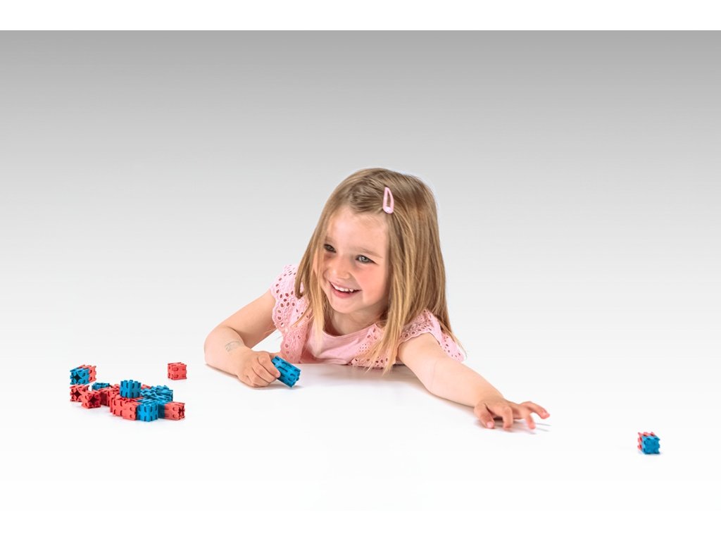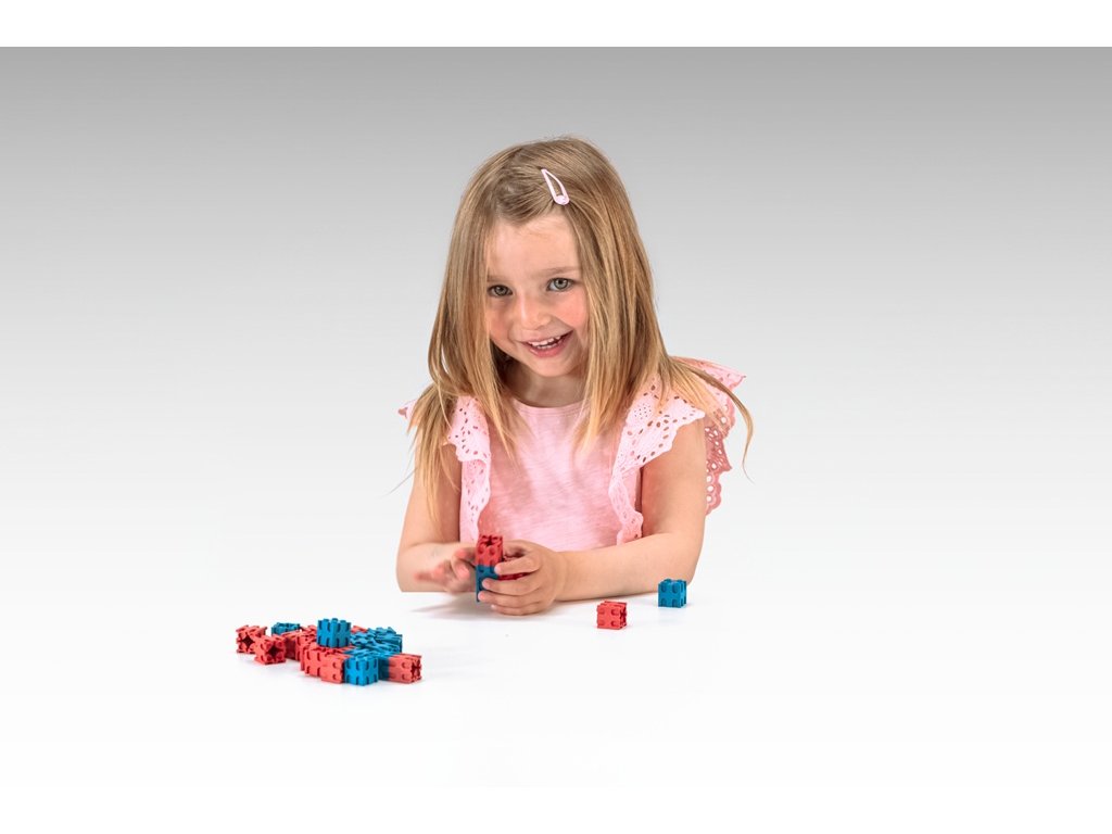 Kostky v červené a modré barvě jsou univerzální didaktická pomůcka pro děti od předškolního věku. Díky možnosti spojování ze všech stran i s posunem jsou ideální pro stavbu prostorových modelů, nácvik jemné motoriky i základních početních úkonů. Díky jejich velikosti se s nimi pohodlně manipuluje a snadno se používají i při měření, vážení a porovnávání. Vyrobeno z pevného 100% recyklovaného dřeva s certifikací PEFC, které je po použití opakovaně recyklovatelné. Zabaleno v kartonové krabičce s návodem. Hlavní vlastnosti: 50 modrých a 50 červených kostektrénuje stavbu 3D tvarů a geometrických tělesrozvíjí jemnou motoriku při spojování kostekpodporuje představivost a tvořivostučí sčítání, odčítání, násobení a dělenípomáhá porovnávat délky a hmotnostirozvíjí třídění a vnímání barevných vzorůzlepšuje koncentraci při práci podle návodu či předlohyvyrobeno ze 100% recyklovaného dřeva s certifikací PEFCvyrobeno v NěmeckuSizing info