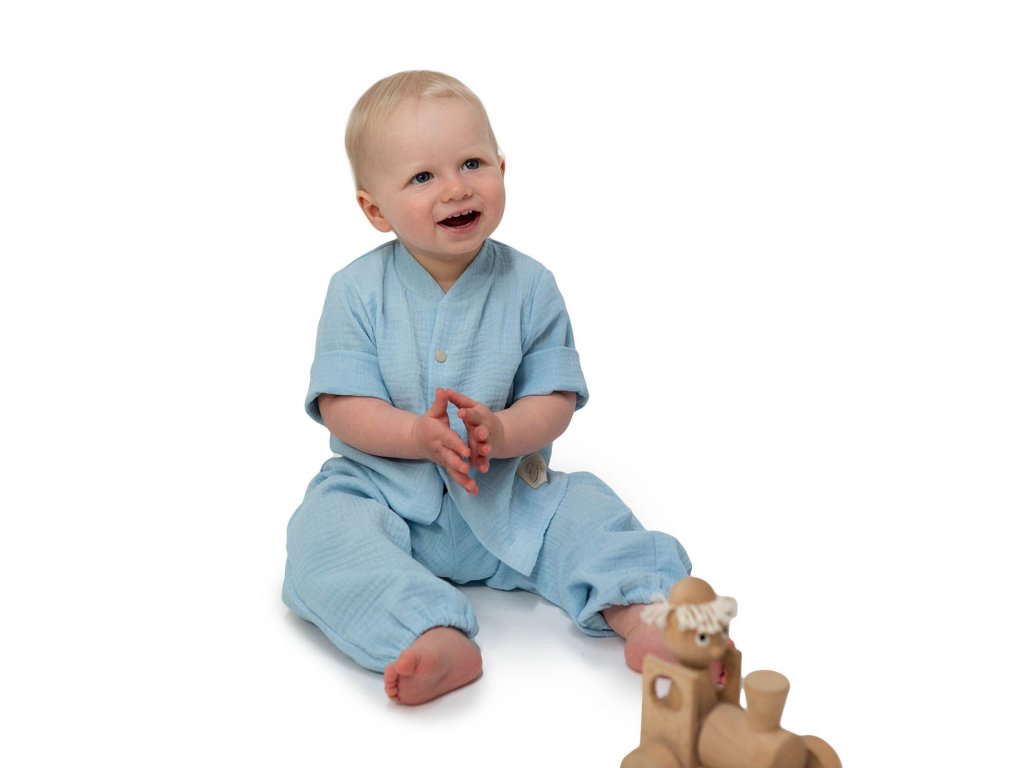 Naše mušelínová košile je pohlazením pro pokožku vašeho dítěte a úleva pro vás. V horkých letních dnech, kdy se běžné oblečení lepí na tělo a způsobuje nepohodlí, naše mušelínová košile vytváří pocit lehkosti a vzdušnosti. Proč se rodiče i děti zamilovávají do naší mušelínové košile Luca Blue ? - Prodloužená záda a volný střih perfektně padne. - Bleskové oblékání - díky celopropínání na praktické druky. - Věděli jste, že dětská pokožka je až 5x citlivější než dospělá? Proto používáme pouze nejkvalitnější mušelín. Vyráběné velikosti: - 74 - 80 - 86 - 92 - 98 - 104 - 110 - 116 Materiál: - 100% mušelínová bavlna s certifikací Oeko-Tex Standard 100 Co dělá náš mušelín tak výjimečným: - Mušelín: Zázračná látka s tisíciletou historií. Mušelín byl původně považován za "látku králů". - Vzdušnost jako žádná jiná látka díky unikátní dvojité struktuře tkaniny. - Přirozená termoregulace – v létě chladí, při ochlazení poskytuje přiměřené teplo. - Hebkost, která s každým praním roste na rozdíl od běžných látek, které se praním opotřebovávají. - Odolnost navzdory jemnosti – vydrží i ty nejdivočejší dětské hrátky Praní a údržba: - Praní: ANO, max. 30°C. - U mušelínu při vysoké teplotě je třeba dávat pozor na vyšší srážlivost až 7%. - Aviváž: ANO. - Sušička: JEN s programem za studena. - Žehlení: ANO, st *,není třeba žehlit. - Vysvětlení k pracím a udržovacím symbolům naleznete zde. - Ostatní: na etiketě výrobku. Značkový výrobek ESITO®. Kvalitní české dětské oblečení. Vyrobeno rodinnou firmou s péčí a láskou k dětem v podhůří Orlických hor.Doplňkové parametry
