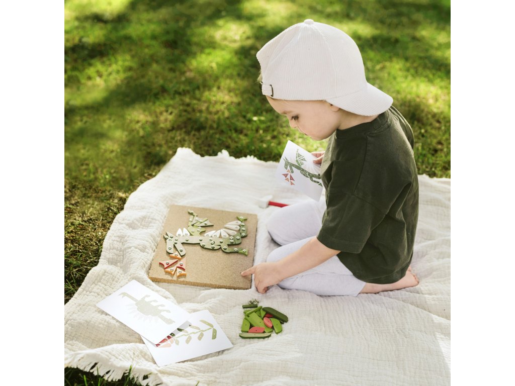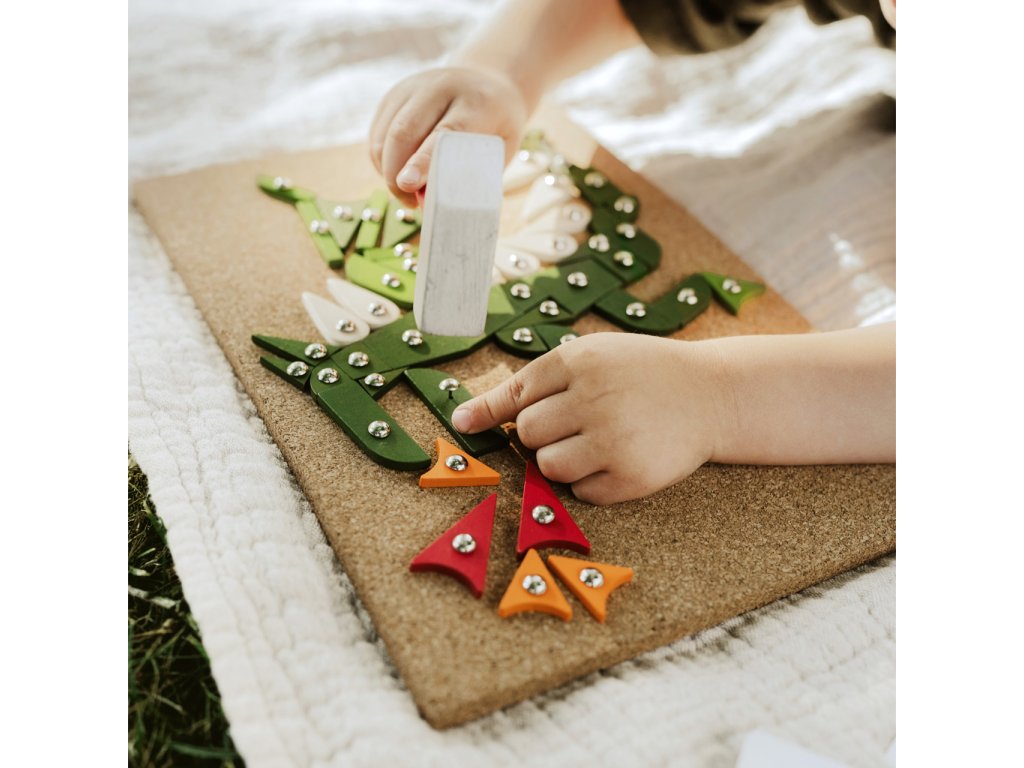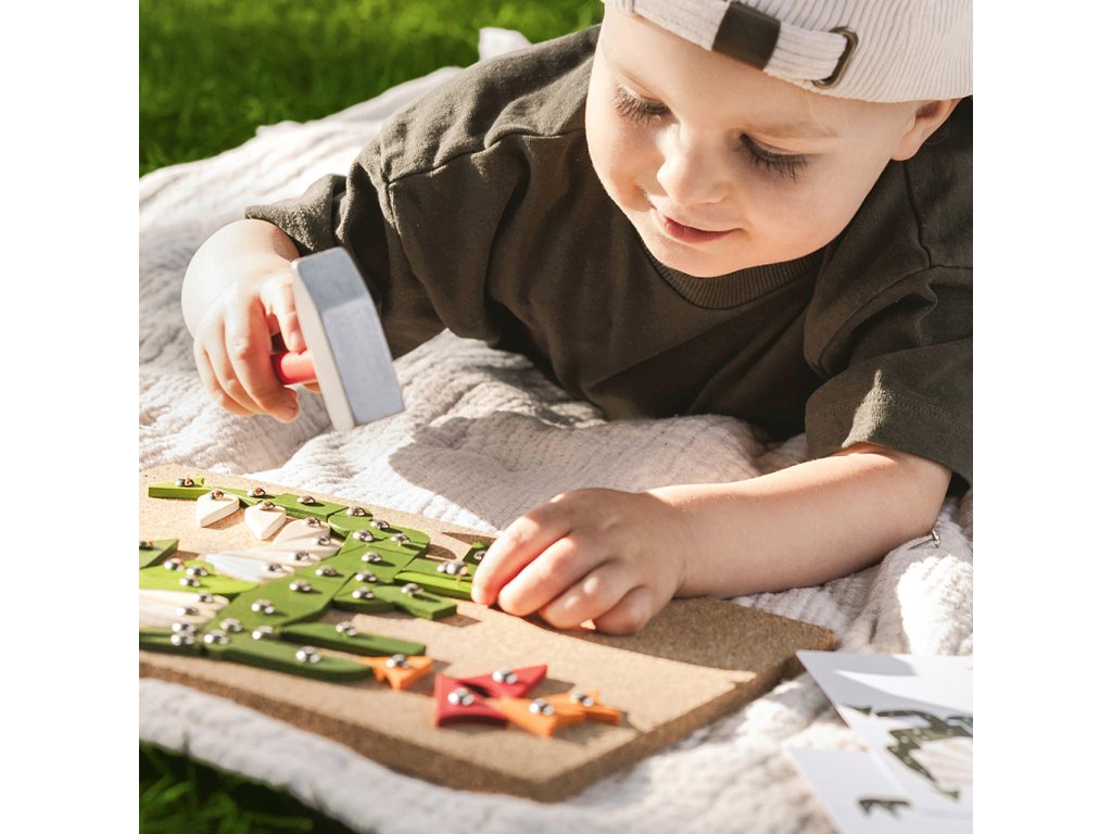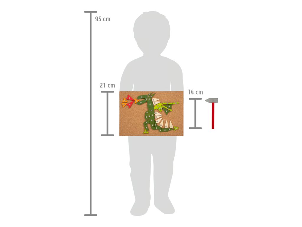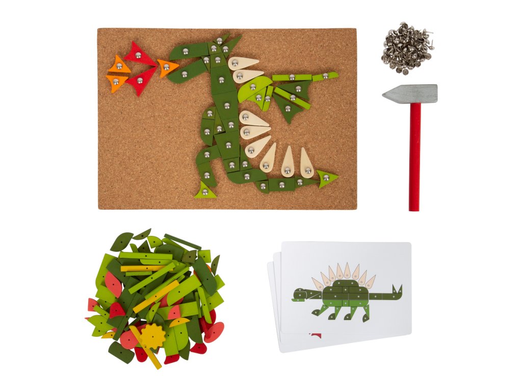 Obsáhlá kreativní hrací sada pro milovníky přírody! V balení najdete korkovou podložku, dřevěné kladivo, připínáčky a mnoho dílků z laminovaného dřeva v rozdílných tvarech a barvách. V krabici, která je vhodná i na uschování této hračky, najdete šest obrázkových předloh.Klasická zatloukací hra v moderních barvách a nesmrtelném designu, s kterou si děti mohou vytvořit obrázky rostlin, dinosaurů či čehokoliv jiného. Mohou se řídit obrázkovými předlohami nebo tvořit dle vlastní představivosti. Hračka pomáhá s rozvojem kreativity, trénuje zručnost, zlepšuje koordinaci ruka-oko a rozeznávání barev a tvarů. Zatloukací sada je vhodná pro děti malé i větší. Hlavní vlastnosti: zatloukací hra s rozsáhlým výběrem motivůdřevěné kladívko, připínáčky, korková podložkadílky různých tvarů a barevděti si procvičí motoriku a rozeznávání tvarů a barevmoderní barevné schémazlepšuje zručnost a koordinaci ruka-okoSizing info
