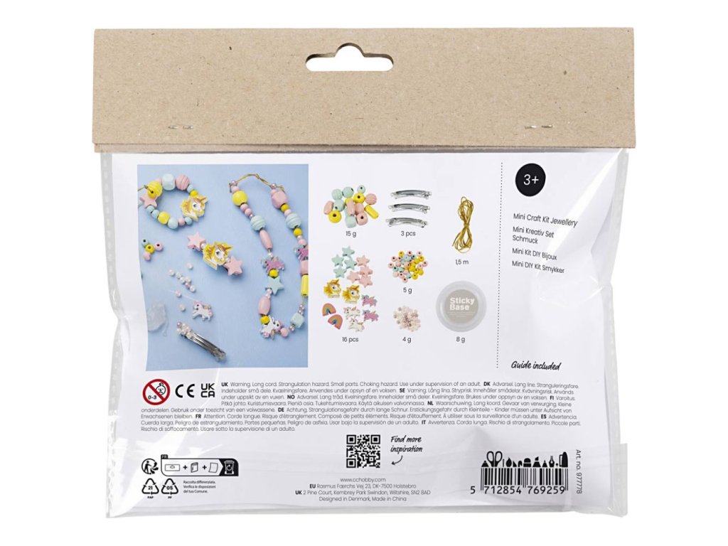 Rozvíjejte radost vašeho dítěte z kreativního tvoření s touto krásnou sadou, která dítěti umožní navrhnout a sestavit sadu šperků podle vlastní fantazie – náhrdelníky, náramky i sponky do vlasů. Spojuje kreativitu s hravou aktivitou rozvíjející jemnou motoriku a estetické cítění. Vše, co děti potřebují v jedné krabičce: • Materiál pro výrobu náhrdelníků, náramků a náušnic v jemných odstínech – kombinace světle modré, růžové a žluté • Elastická šňůrka pro jednoduché navlékání korálků bez složitých zapínání • Různé typy korálků: dřevěné, perleťové, tvarované (hvězdičky, duhy, jednorožci) – pro pestré kombinace • Lepidlo a doplňky (např. sponka do vlasů) pro kreativní možnosti rozšíření šperků • Podrobný návod s tipy, jak snadno začít a jak kombinovat různé typy korálků Zábava a rozvoj dovedností: • Učí děti princip navlékání korálků a kombinování barev, tvarů a materiálů • Rozvíjí jemnou motoriku, soustředění, trpělivost a cit pro design • Projekt vhodný pro děti od 3 let a výše – jednoduchost konstrukce zaručuje snadný start pro nejmenší tvůrce • Skvělé pro společné rodinné tvoření Obsah balení: • Korálky (různé tvary a velikosti) • Elastická šňůrka • Lepidlo • Sponky do vlasů • Podrobný návod Vhodné pro děti od 3 let.Doplňkové parametry