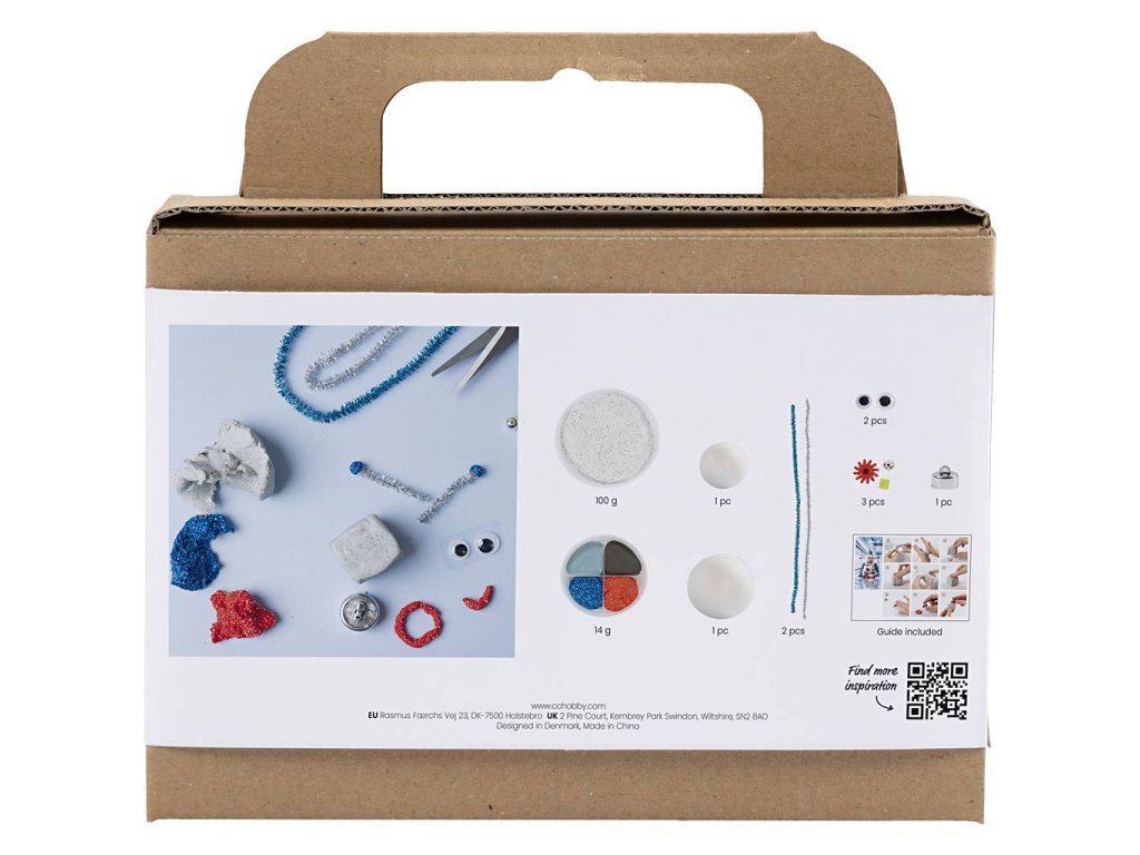 Originální kreativní sada pro vytvoření postavičky robota. Zábavná sada dětem umožní kombinovat různé druhy modelovacích hmot, korálků a drátků do originální pohyblivé postavičky robota. Ideální projekt pro malé techniky a nadšence do robotiky. Vše, co děti potřebují v jedné krabičce: • Materiál pro výrobu pohyblivého robota v odstínech modré, šedé a červené • Samoschnoucí modelovací hmota s kamenným efektem Stone Clay • Měkké a lehké hmoty Foam Clay® a Silk Clay® pro detaily a dekorace • Různé doplňky: korálky, polystyrénové koule, pohyblivá očka a chlupaté drátky • Podrobný návod s obrázkovým postupem krok za krokem Zábava a rozvoj dovedností: • Umožňuje dětem vyzkoušet si práci s různými materiály a technikami modelování • Rozvíjí jemnou motoriku, prostorovou představivost a trpělivost • Projekt vhodný pro děti od 6 let – přehledný postup bez nutnosti předchozích zkušeností • Skvělé pro samostatné tvoření i společné rodinné odpoledne Obsah balení: • Modelovací hmota Stone Clay, Foam Clay® a Silk Clay® • Korálky • Polystyrénové koule • Pohyblivá očka • Chlupaté drátky • Podrobný návod Vhodné pro děti od 6 let.Doplňkové parametry