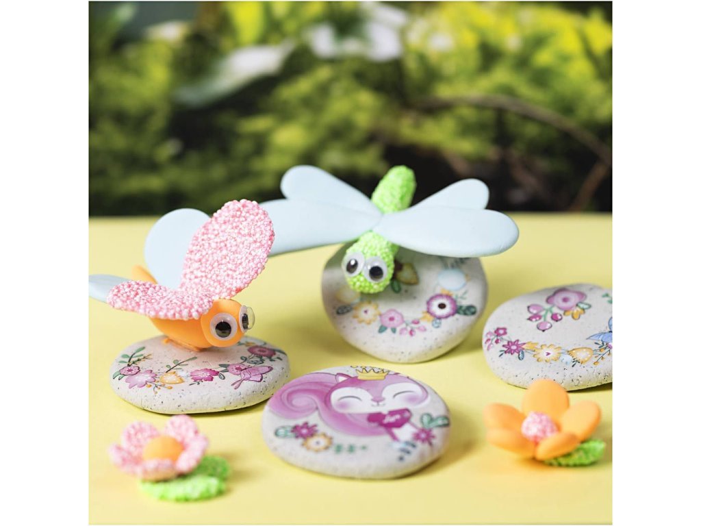 Kreativní sada pro malé tvůrce s fantazií rozvíjí představivost i jemnou motoriku dítěte. Díky speciální hmotě Stone Clay s kamenným práškem a barevným doplňkům si děti mohou vytvořit vlastní kameny a proměnit je v hravé originální dekorace. Při svém tvoření se děti mohou inspirovat přírodou kolem sebe nebo pouze vlastní fantazií, záleží jen na jejich preferencích! Tvoření, které inspiruje: • Z hmoty Stone Clay lze jednoduše vymodelovat kameny s realistickým vzhledem • Po vytvrdnutí se kameny zdobí obtisky a pěnovou i hedvábnou modelínou Foam Clay® a Silk Clay® • Děti mohou modelovat motýlky, vážky nebo vymyšlené broučky a doplnit jimi své výtvory • Hotové kameny se stanou originální ozdobou dětského pokoje Rozvoj tvořivosti hrou: • Podporuje fantazii, trpělivost a smysl pro detail • Pomáhá rozvíjet jemnou motoriku a prostorové vnímání • Nabízí volnost tvoření bez pravidel a omezení Obsah balení: • Modelovací hmota Stone Clay, Foam Clay® a Silk Clay® • Propisot obtisky • Nástroj pro přenos obtisků • Pohyblivá očička Vhodné pro děti od 5 let.Doplňkové parametry