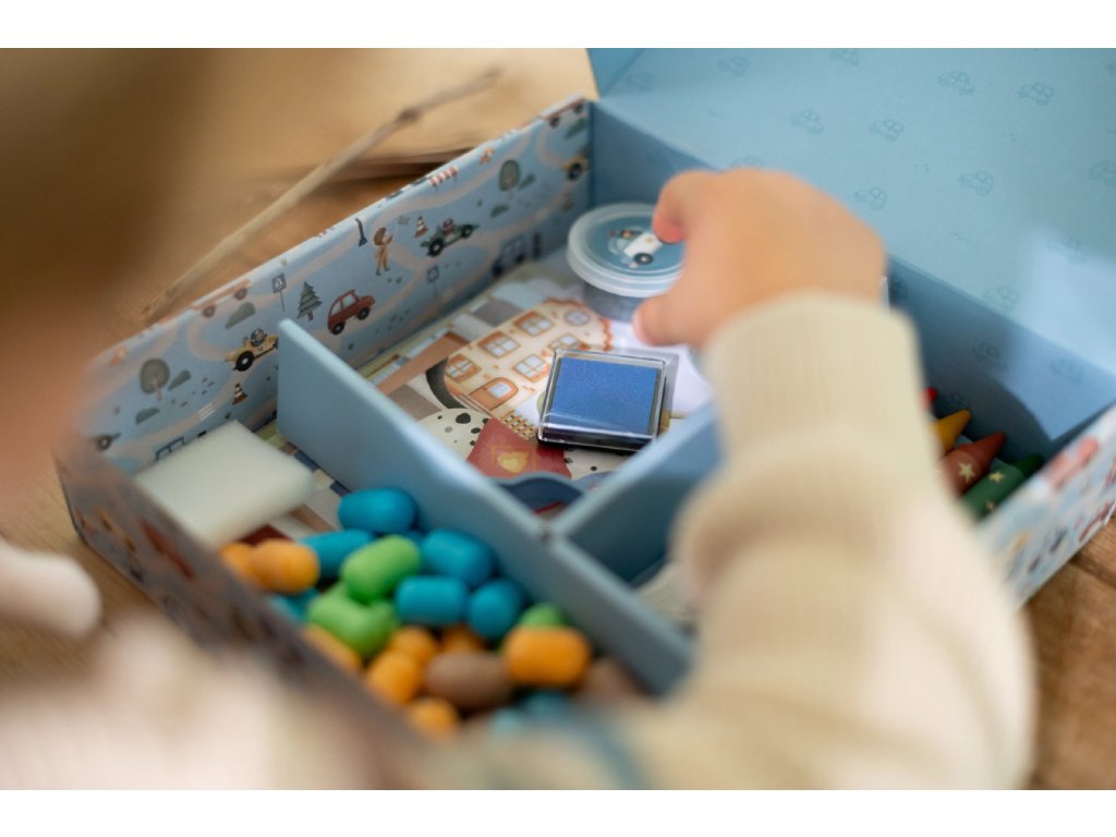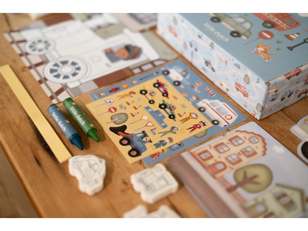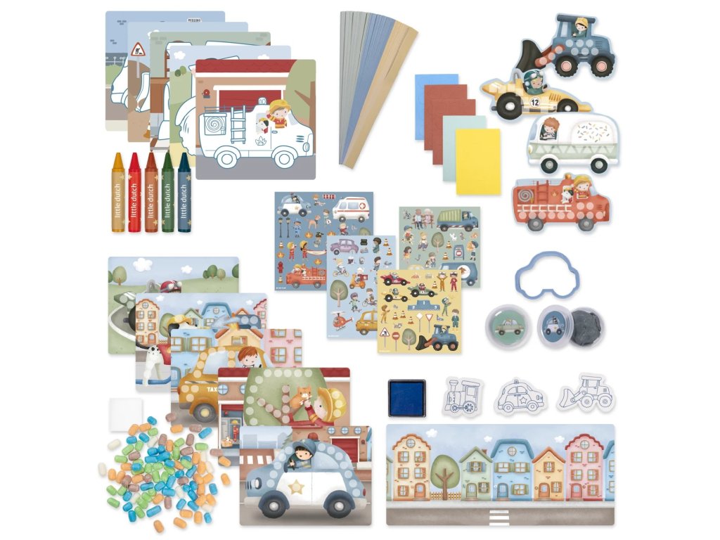 Podpořte dětskou fantazii s touto velkou kreativní sadou Little Dutch s tématikou dopravních prostředků a života ve městě. Krabice je plná výtvarných pomůcek, které inspirují k tvoření, malování i lepení. Součástí sady jsou barevné papíry, omalovánky, voskovky, barvy, pěnová hmota, razítka a samolepky – vše, co malé ručičky potřebují k nekonečné zábavě. Ideální pro společné tvoření, objevování nových materiálů a rozvíjení kreativity i jemné motoriky. Vhodné pro děti od 3 let.Doplňkové parametry