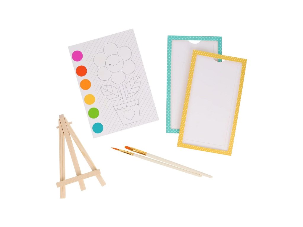 Staňte se umělcem! V této kreativní sadě najdete vše, co potřebujete k vytvoření uměleckého díla. Sada obsahuje 2 kartónové rámečky, 1 dřevěný stojan, 3 štětce, 10 prázdných listů papíru pro vytvoření vlastního díla a 20 předtištených listů k vybarvení. Každý z 20 listů má na sobě také paletku barev. Stačí tedy jen malinko namočit štětec a můžete začít vybarvovat. Vše je zabaleno v praktickém kovovém kufříku se zámečkem a bavlněnou rukojetí. Sada je tedy vhodná i na cesty. Splňuje všechny aktuální evropské bezpečnostní normy. Hlavní vlastnosti: rozvíjí kreativitu a zručnostpraktické balenívhodné i na cesty od 6 let věkuSizing info