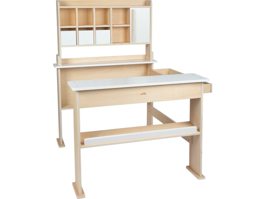 Perfektní prodejní stánek pro malé prodavače a prodavačky! Tento prodejní stánek z přírodního dřeva v kombinaci s bílou barvou zaujme nejen vzhledem, ale i propracovanými detaily. Nabízí velkorysý prostor pro hraní, praktické úložné prvky a realistické funkce, které děti vtáhnou do světa nakupování. Tři zásuvky na drobnosti, boční přihrádka a posuvné dveře v zadním regálu zajišťují přehled a dostatek místa pro dokoupitelné příslušenství. Robustní konstrukce zajišťuje stabilitu i při delším hraní. Stánek podporuje rozvoj komunikačních a početních dovedností, učí základní pravidla sociální interakce a podněcuje kreativitu i fantazii. Výrobek je dodáván v rozloženém stavu s přehledným obrázkovým návodem k sestavení. Hlavní vlastnosti: robustní a odolné dřevěné provedenínadčasový design z přírodního dřeva s bílými prvkyprostorný pult a bohatý úložný prostor3 zásuvky, boční přihrádka a zadní regál s posuvnými dvířkyrozvíjí komunikační a sociální dovednosti dětíideální pro hru na role a hravé učenídodáváno s obrázkovým návodem k montážiSizing info