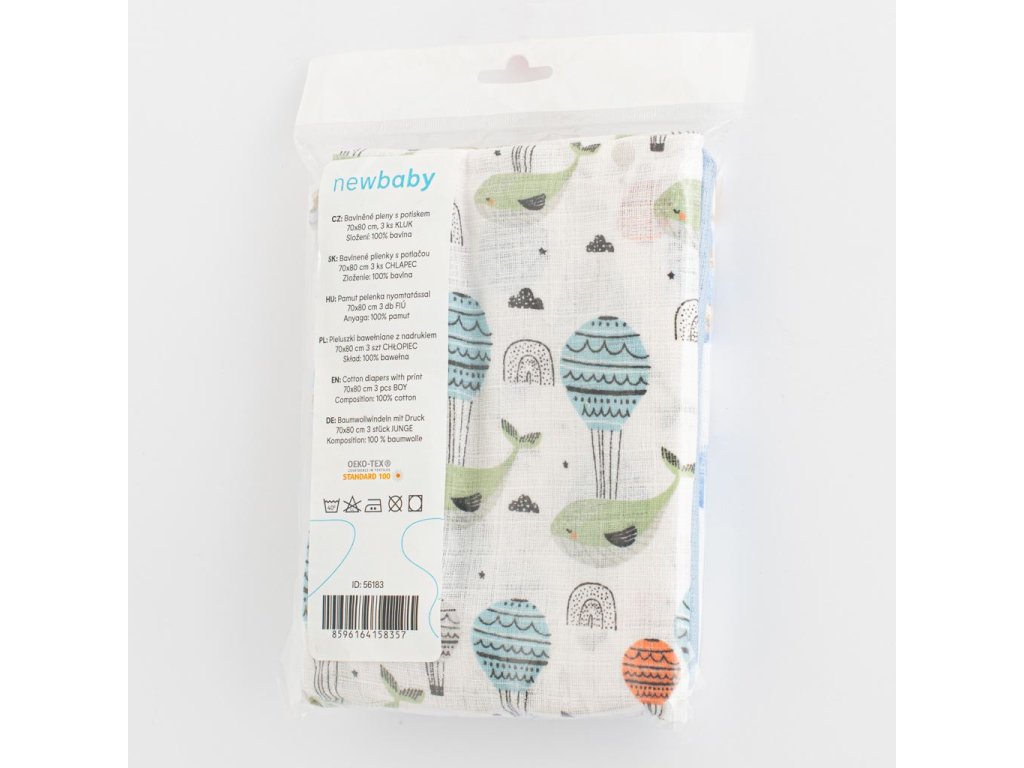 Bavlněné pleny s potiskem New Baby 70x80 cm 3 ks KLUK
