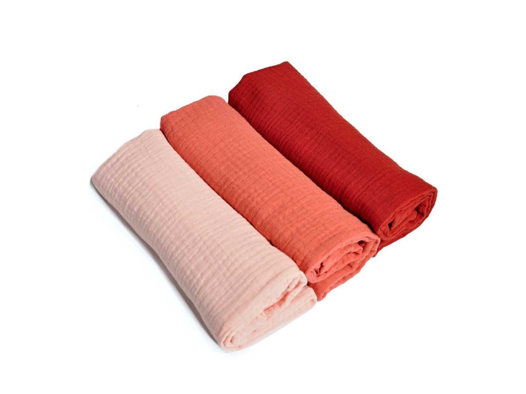 - 3 ks mačkaných mušelínových plen barevných ve zvýšené gramáži 125g/m2