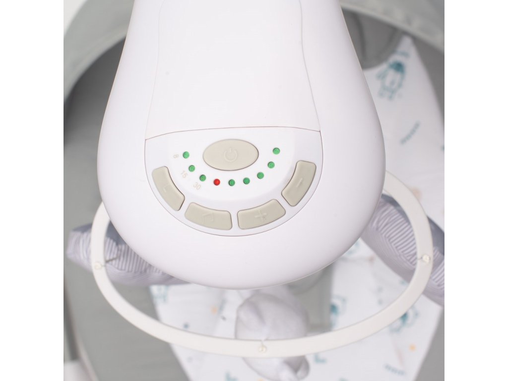 - napájení houpání: adaptér / baterie 4xAA, vibrace: baterie 1xD (baterie nejsou součástí balení)