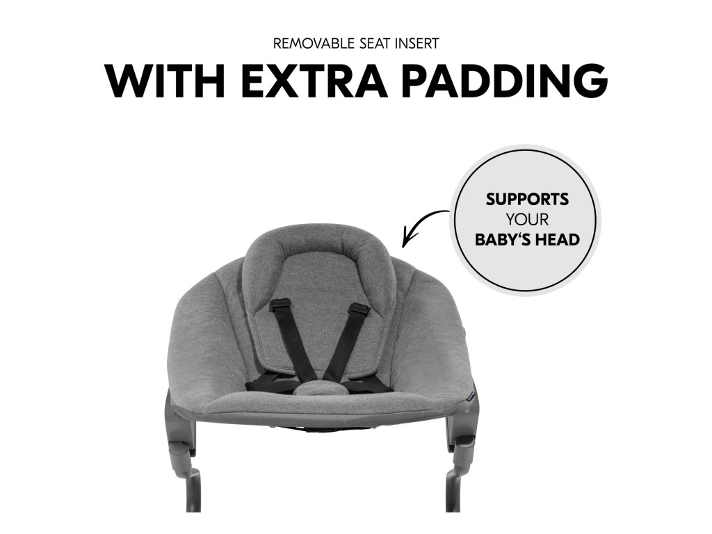 Z VYSOKÉ ŽIDLIČKY DO LEHÁTKA BĚHEM CHVILKY // Díky přídavnému rámu můžete během chviličku změnit nástavec na židličku v pohodlné lehátko. Máte doma malého neposedu, jednoduše sklopte nožičky rámu a maličký se může sám pohupovat dopředu a dozadu, v rytmu houpání svých nožiček.