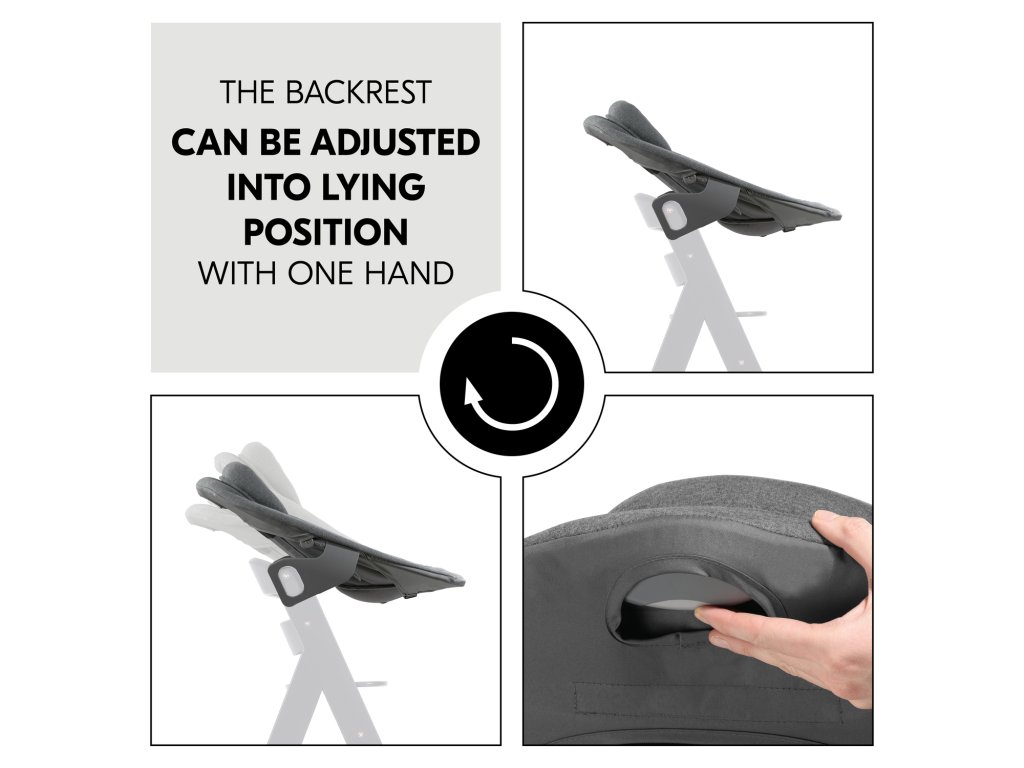 NASTAVITELNÁ OPĚRKA ZAD PRO MAXIMÁLNÍ POHODLÍ // Opěrku zad lze snadno nastavit jednou rukou pro ještě větší pohodlí vašeho maličkého. Chce vaše děťátko sledovat okolí nebo si naopak potřebuje odpočinou, není problém, stačí opěrku zad nastavit do potřebné polohy.