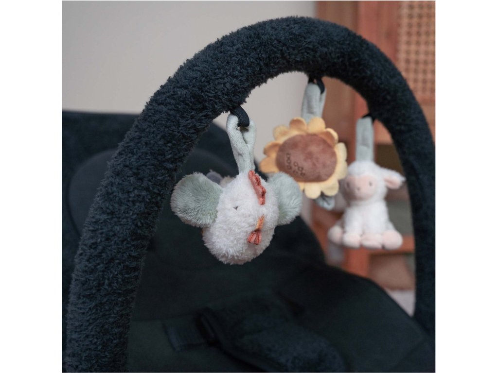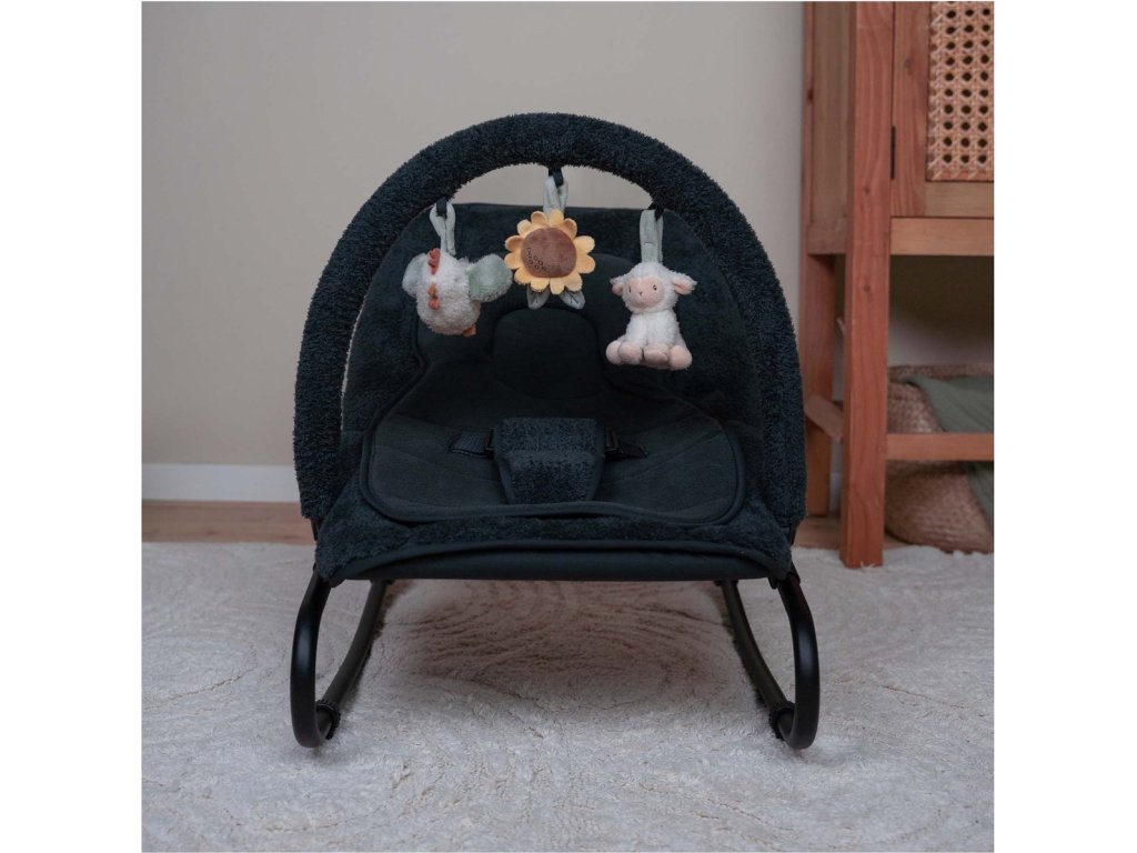 Houpací lehátko Little Dutch s hrazdou poskytne vašemu dítě pohodlné místo k odpočinku i hraní. Pozornost dítěte upoutají tři zavěšené plyšové hračky v podobě slepičky, kytičky a ovečky. vyjímatelná vložka pro nejmenší miminka pevná a houpací poloha nastavitelné polohy opěrky zad i nohou 3-bodový bezpečností pás Rozměry: 77 x 48,5 x 23-55 cm Hmotnost: 2,9 kg Složení: ocel, 100% polyester Vhodné pro děti od narození do 6 měsíců (max. do 9 kg).Doplňkové parametry