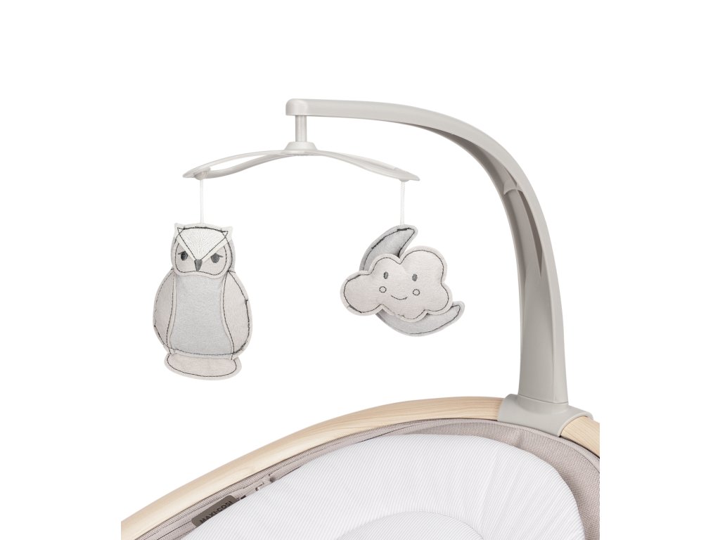 Houpací lehátko v krásném designovém provedení Maxi-Cosi Cassia poskytne vašemu dítěti pohodlí a možnost být neustále ve vaší blízkosti. Lehátko je vhodné pro spaní i pro zabavení dítěte pozorováním jeho okolí. Svým originálním designem se stane i krásným doplňkem vašeho interiéru. Lehátko umožňuje nastavení pěti rychlostí houpání a časovač na 8, 15 nebo 30 minut. Lehátko můžete otáčet o 360°, abyste na sebe s dítětem viděli bez ohledu na to, kde se v místnosti nacházíte. Lehátko nabízí dvě polohy sklonu na spaní i na pozorování okolí. Hudební box s možností nastavení hlasitosti obsahuje 12 melodií a přírodních zvuků. Detektor pohybu automaticky zapne uklidňující houpání, když se dítě probudí a začne plakat. Měkké hračky zavěšené na hrazdě se při houpání lehátka jemně pohybují a upoutají tak pozornost dítěte. Lehátko je vybaveno pohodlnou měkkou vložkou pro maximální pohodlí dítěte a 3-bodovým bezpečnostním pásem. Textilní části lehátka jsou s ohledem na udržitelnost životního prostředí vyrobeny ze 100% recyklovaných materiálů. Snímatelný potah je možné prát v pračce. Lehátko je napájeno ze sítě a nabízí i možnost fungování na baterie (4xAA baterie nejsou součástí balení). Hmotnost: 4 kg Vhodné od narození do cca 6 měsíců (do 9 kg).Doplňkové parametry