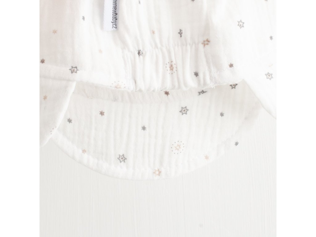 Letní mušelínová čepička s kšiltem české značky New Baby Arthur. Čepička ochrání hlavičku před prudkým sluncem a díky kšiltu, který udělá stín nespálí tvářičku a chrání oči dítěte před sluncem. Je krásně tvarovaná na ouška, zavazuje se na tkaničky, netlačí a bude dobře držet na hlavičce miminka. Mušelín je jedna z nejčistších, nejjednodušších a nejjemnějších tkanin na světě. Jemně tkaný prodyšný materiál je tak dokonalý, že si jej zamilují děti po celém světě. Lehká struktura umožňuje mušelínu „dýchat“ a zajišťuje dostatečnou cirkulaci vzduchu, čímž snižuje riziko přehřátí. Tato vlastnost pomáhá udržet Vaše dítě v pohodlí, bezpečí a rodiče v klidu. Mušelín je velmi odolný a to tak, že bez problémů zvládá opakované praní a postupem času je lehčí a jemnější. Složení: 100% bavlna. OEKO-TEX STANDARD 100.Doplňkové parametry