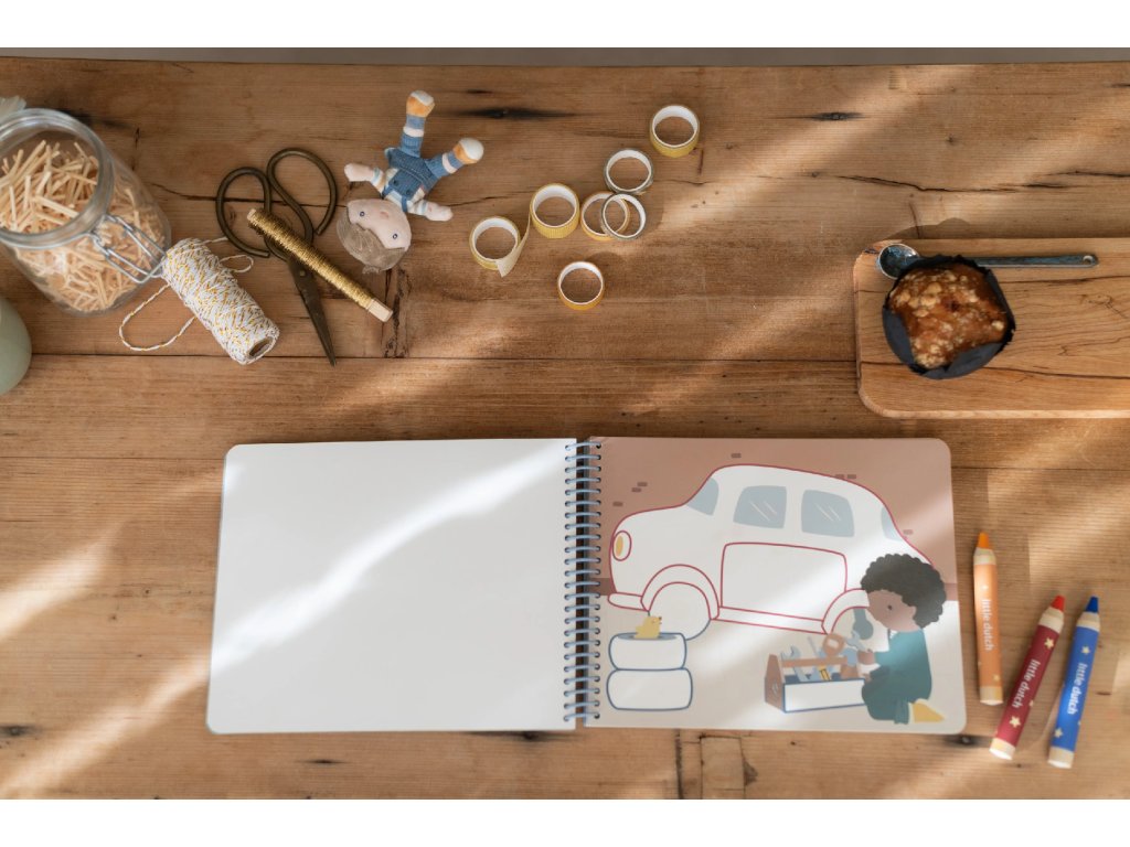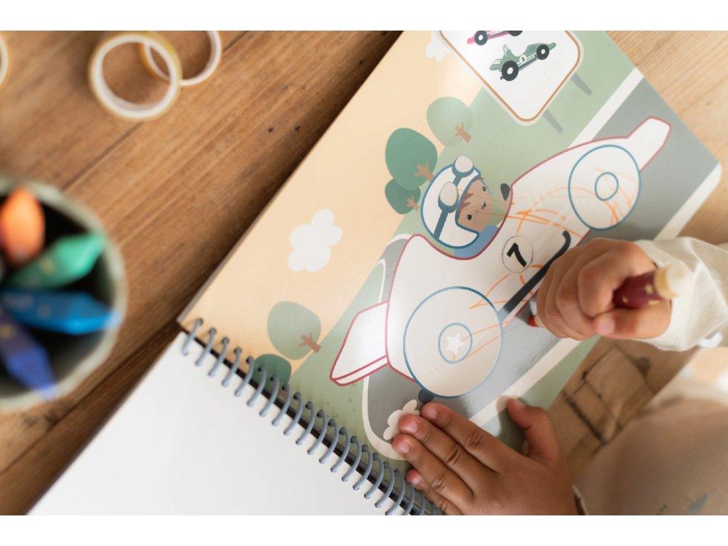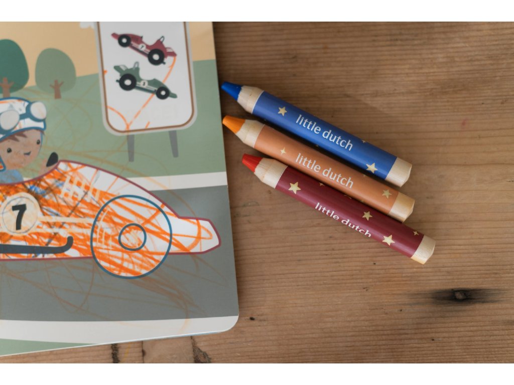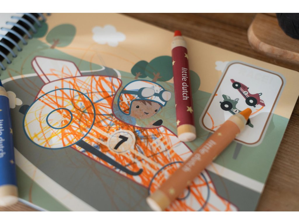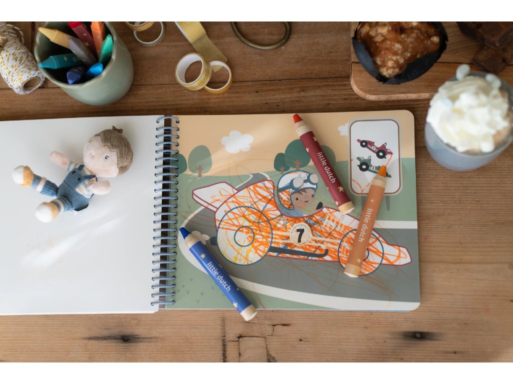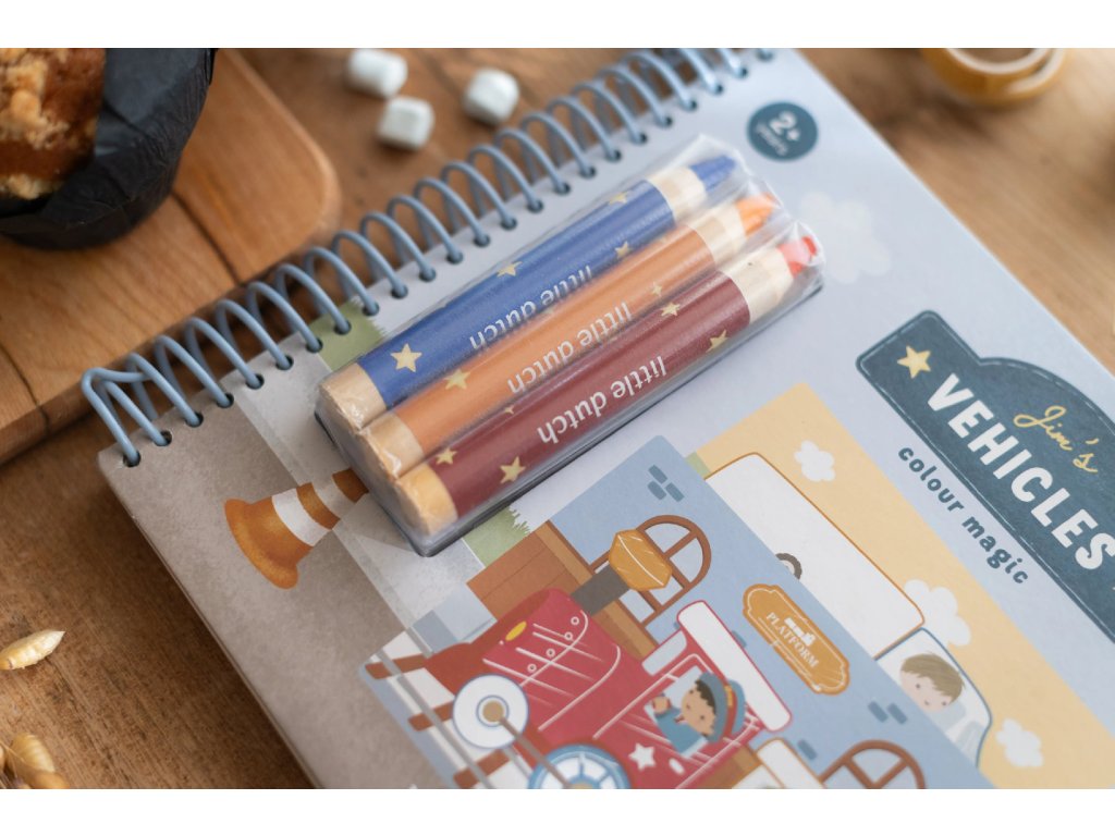 Nechte své dítě objevovat svět barev s těmito kouzelnými omalovánkami Little Dutch. Jemné ilustrace s tématikou dopravních prostředků vybízejí k vybarvování a rozvíjejí dětskou fantazii. Pastelky rozvíjejí jemnou motoriku a díky svému tvaru se snadno drží. Součástí sady jsou tři pastelky, dvacet předtištěných a deset prázdných stránek pro nekonečné malování podle představ. Vyrobeno z pevného papíru, díky spirále ve hřbetu se stránky omalovánek snadno otáčí a drží otevřené na stole. Vhodné pro děti od 2 let.Doplňkové parametry