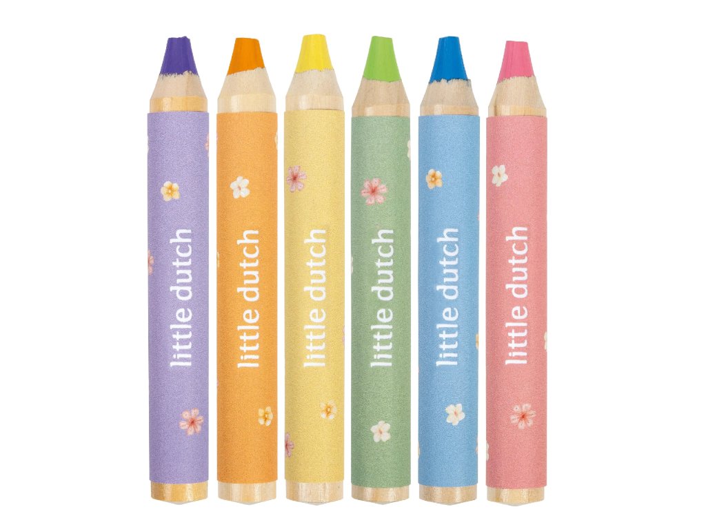 Nechte své dítě rozvinout fantazii s touto Little Dutch sadou 6 krátkých silnějších pastelek v jemných odstínech. Jsou ideální pro malé ručičky, které se učí kreslit, malovat a objevovat barvy. Pastelky podporují kreativitu, rozvíjejí jemnou motoriku a díky svému tvaru se snadno drží. Skvěle doplňují ostatní výtvarné potřeby Little Dutch a přinášejí hodiny zábavy při tvoření i společném kreslení. Vhodné pro děti od 2 let.Doplňkové parametry