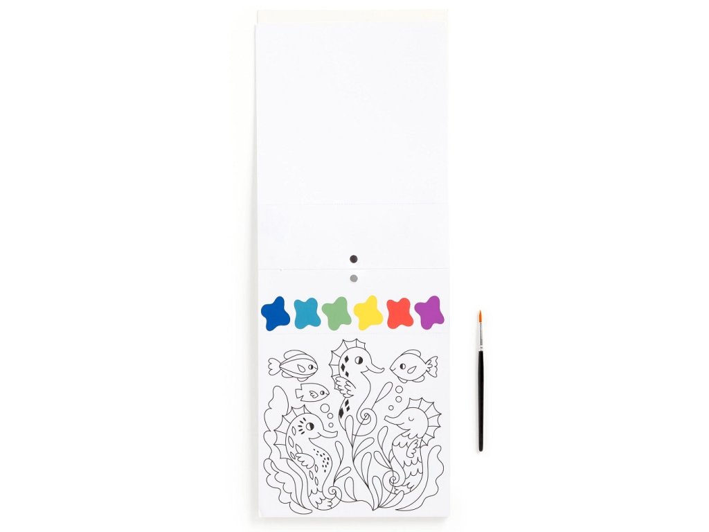 Tato sada je vhodná pro malé umělce. Rozvíjí tvůrčí myšlení, motoriku a soustředění. Sada obsahuje štětec a 10 předtištěných listů k vybarvení. Každý z listu s mořskou tématikou má na sobě také paletku barev. Stačí tedy jen malinko namočit štětec a můžete začít vybarvovat. Navíc každý list má i perforovaný okraj a umožňuje tak oddělit hotovou kresbu od paletky barev. Splňuje všechny aktuální evropské bezpečnostní normy. Hlavní vlastnosti: podporuje jemnou motorikurozvíjí kreativitu a zručnostobahuje 1 stětec a 10 ks karet s ilustrací mořského životasplňuje bezpečnostní normy CPSIA, ASTM a CEvyrobeno z FSC papíruvhodné od 5 let Značka a certifikát FSC® (Forest Stewardship Council) zaručuje, že dřevo, ze kterého byl produkt vyroben, nebylo vytěženo nelegálně a pochází z lesů obhospodařovaných šetrným či přírodě blízkým způsobem, ve kterém jsou dodržovány přísné environmentální a sociální požadavky. Značka FSC® na výrobku znamená, že svým nákupem pomáháte chránit lesy a podporujete šetrné, odpovědné či přírodě blízké hospodaření, díky kterému jsou naše lesy stabilnější, zdravější, mají přirozenou druhovou skladbu a lépe odolávají negativním následkům klimatických změn.Sizing info