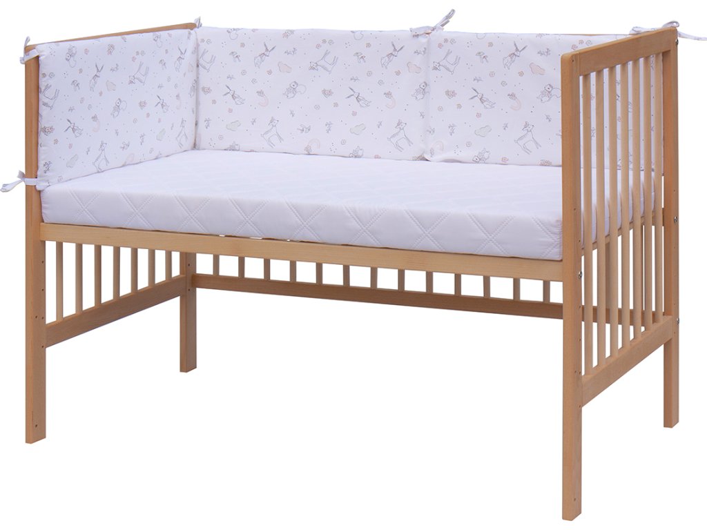 Mantinel do postýlky pro bezpečnější pohyb dítěte. Mantinel je do 1/2 postýlky 120 x 60 cm, výška 30 cm. Přivazuje se k tyčkám. Pokud by Vám nestačil mantinel do půlky postýlky, lze si dát dva proti sobě a mít tak ochranu po celé postýlce.