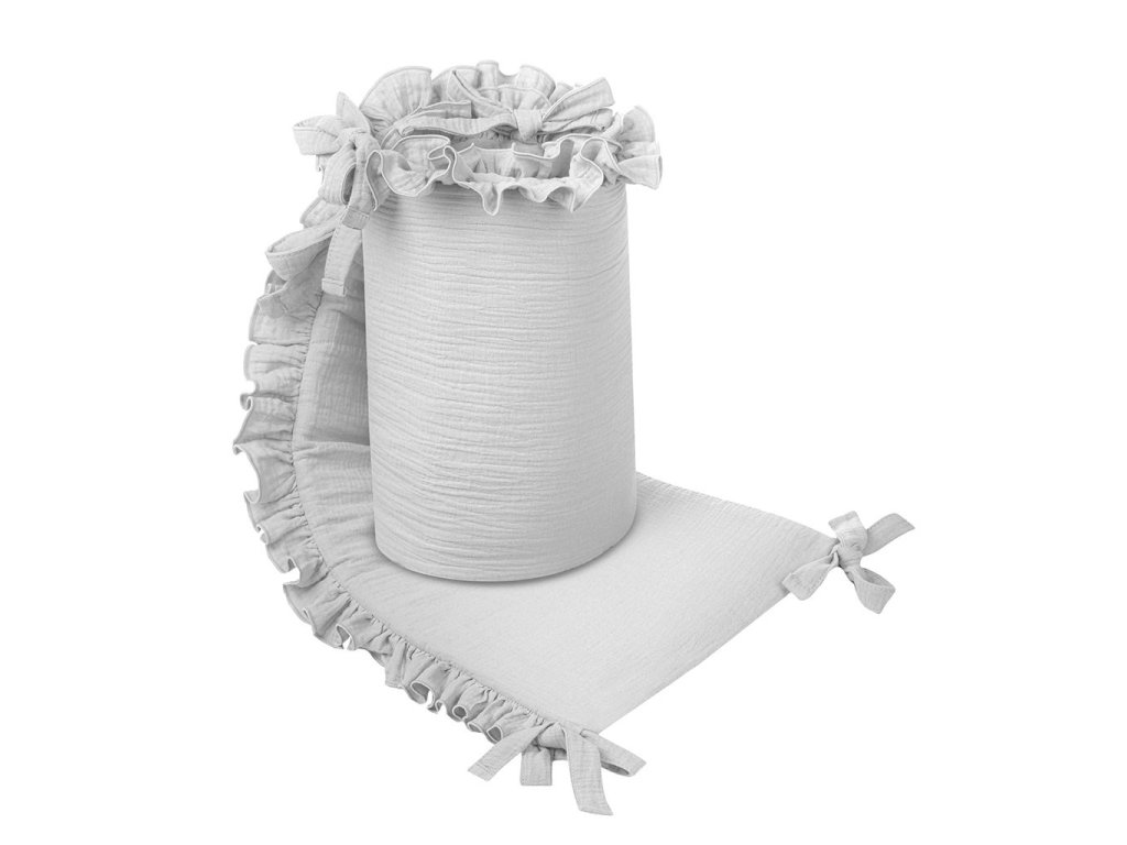 Moderní a praktický mantinel do postýlky Belisima Mušelín. Je vyroben z měkkého, příjemného materiálu. Složení: 100% bavlna. Výplň: 100% polyester. Upevnění k postýlce za pomocí stuh. Rozměr: cca 180x33 cm.Tyto výrobky jsou bezpečné, protože: