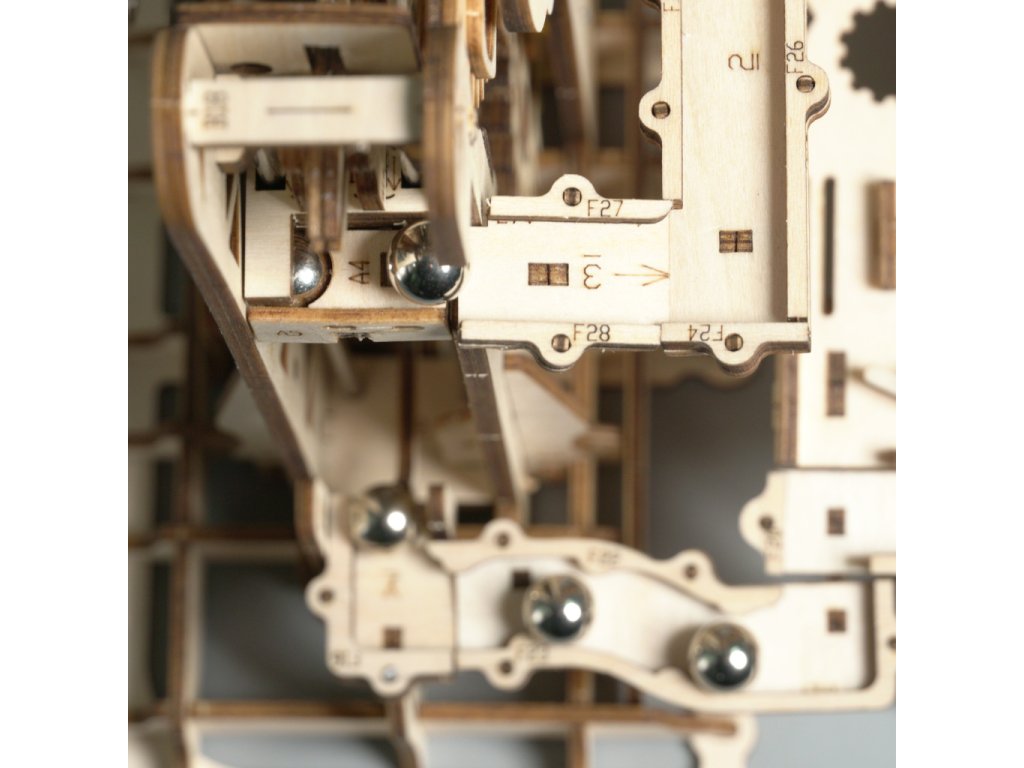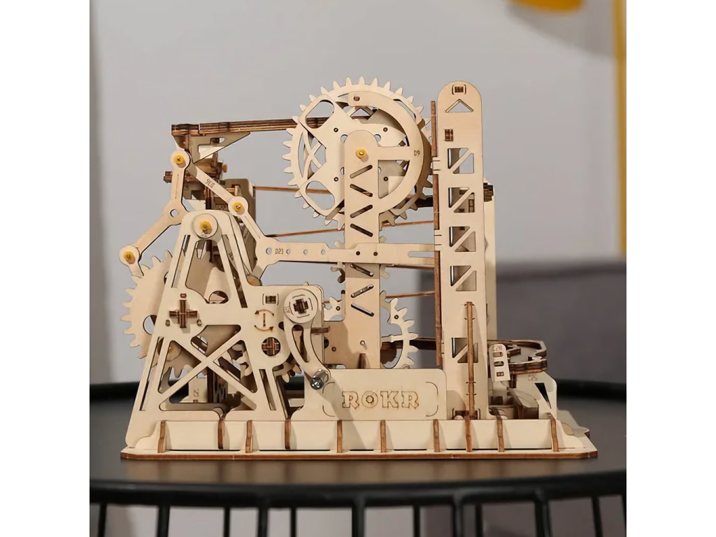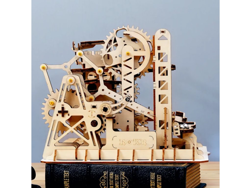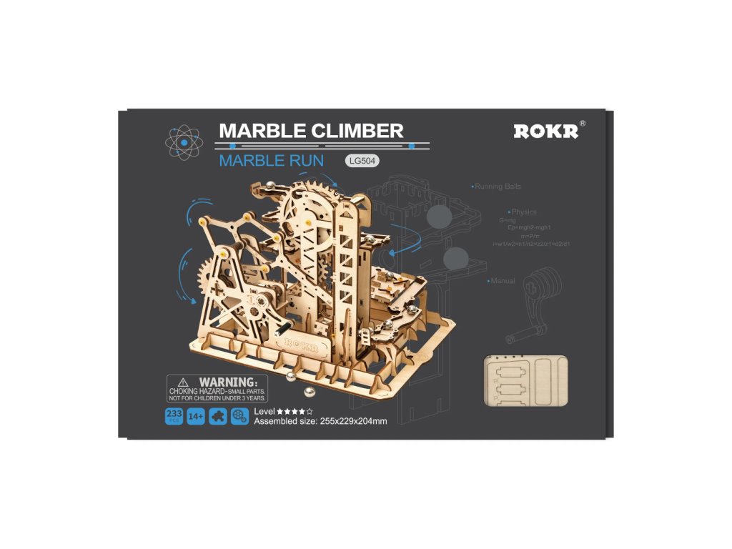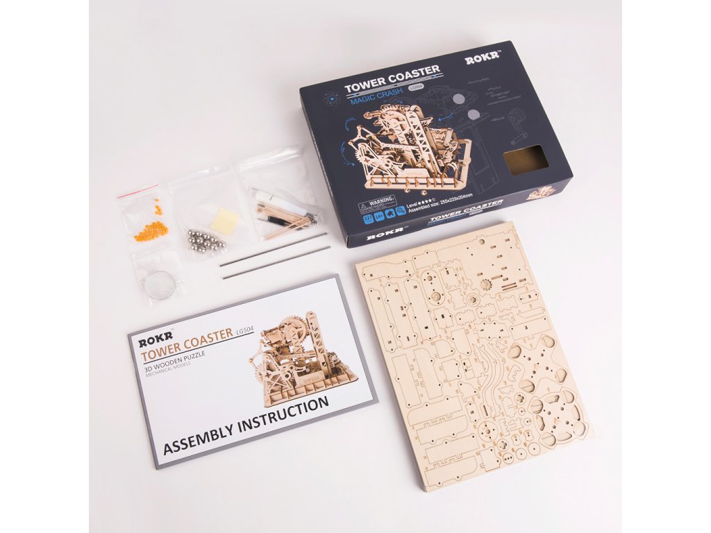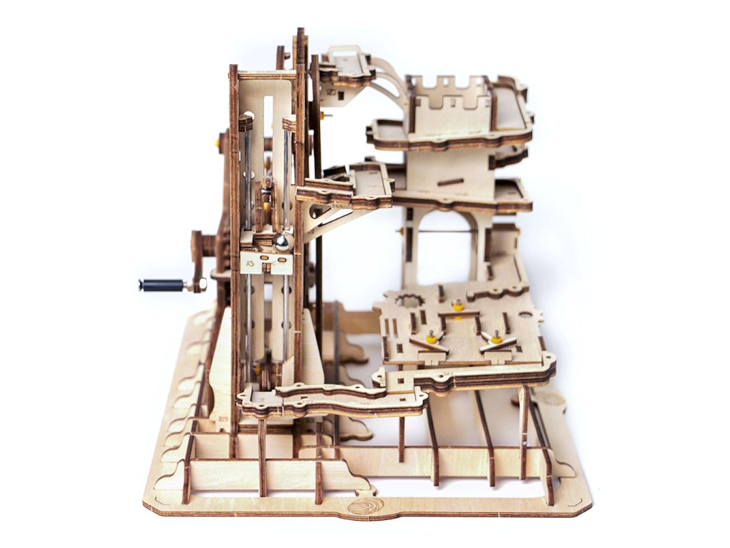 Kuličková dráha s výtahem v šachtě a překážkovou věží. Skládačky kuličkových drah Robotime nabízejí jinde nevídané podrobnosti a variabilitu. Každá se může pyšnit originálními funkčními detaily a roztodivnými překážkami, které často nápaditě změní dráhu kuličky, a přinášejí tak výjimečnou zábavu. Mechanika je poháněna ručním pohonem, otáčením klikou, kterým jsou také vynášeny a na cestu pravidelně spouštěny kuličky. Skládačka je dodávána v nesloženém stavu, balena v krabici. Vybaveno detailním návodem k sestavení. Hlavní vlastnosti:skládačka dráhy a 10 kuliček227 precizně vyřezaných dílkůstřední obtížnost sestaveníSizing info